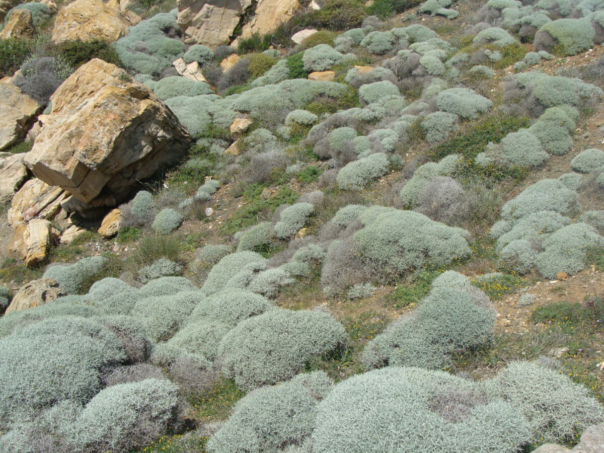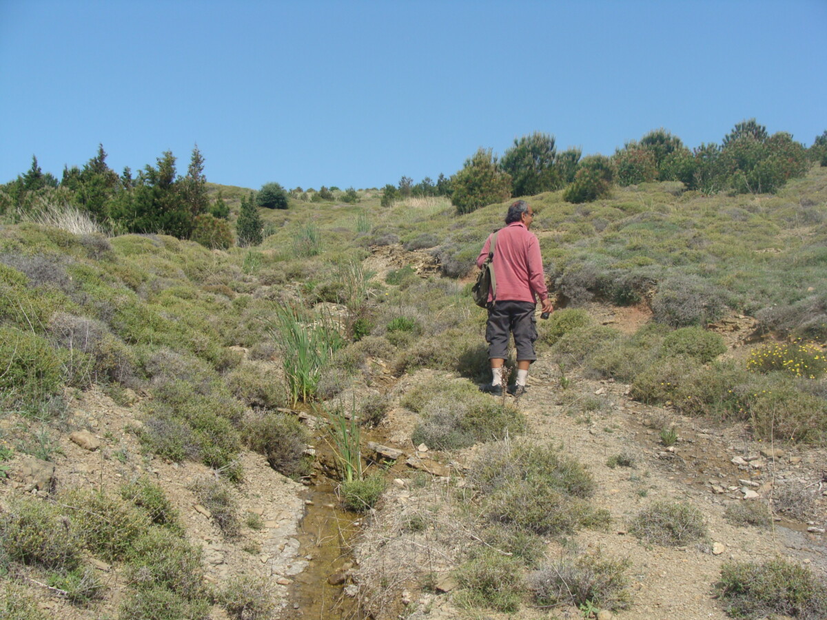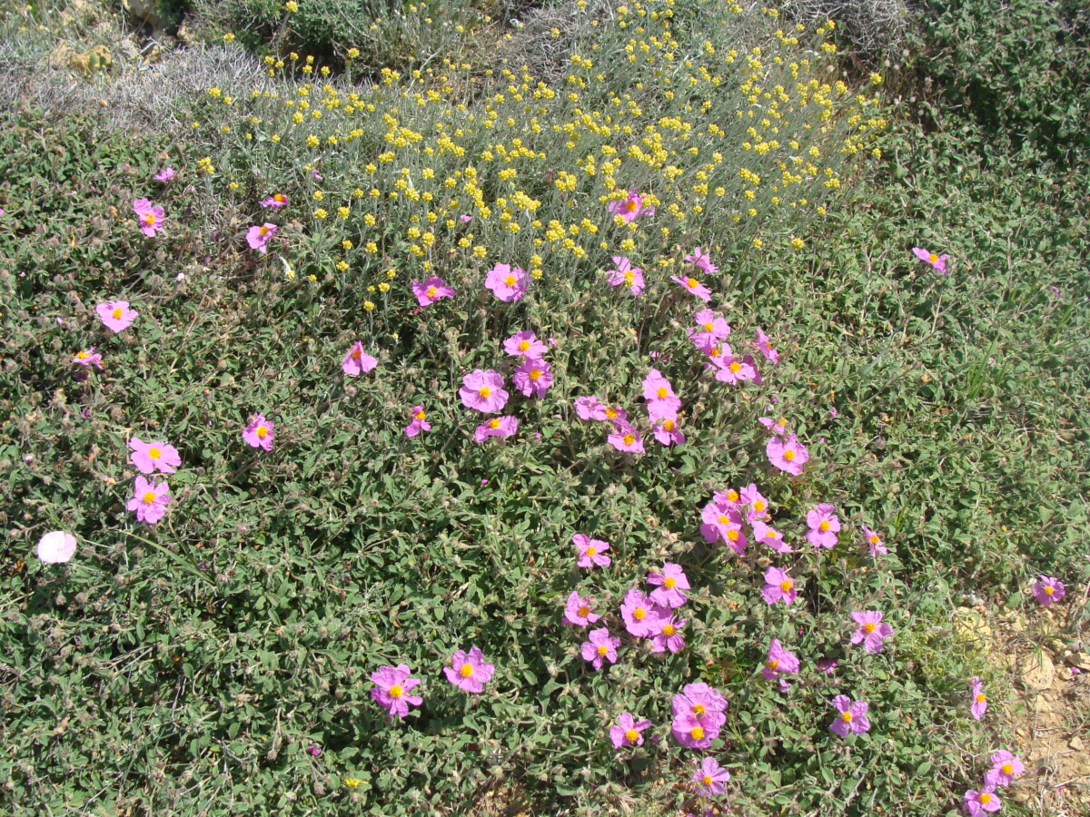 En tussen 11 en 16 uur hebben we dan de helft van het eiland intensief doorkruist – haast even veel wandelend als fietsend (en dat vaak in ‘wilde vaart’). Uitermate rustig, fraai landschap met overwegend laag struweel, prachtige kustflora, rotsen, zee, kleine strandjes, hier en daar kleine wijngaarden, olijfbomen.