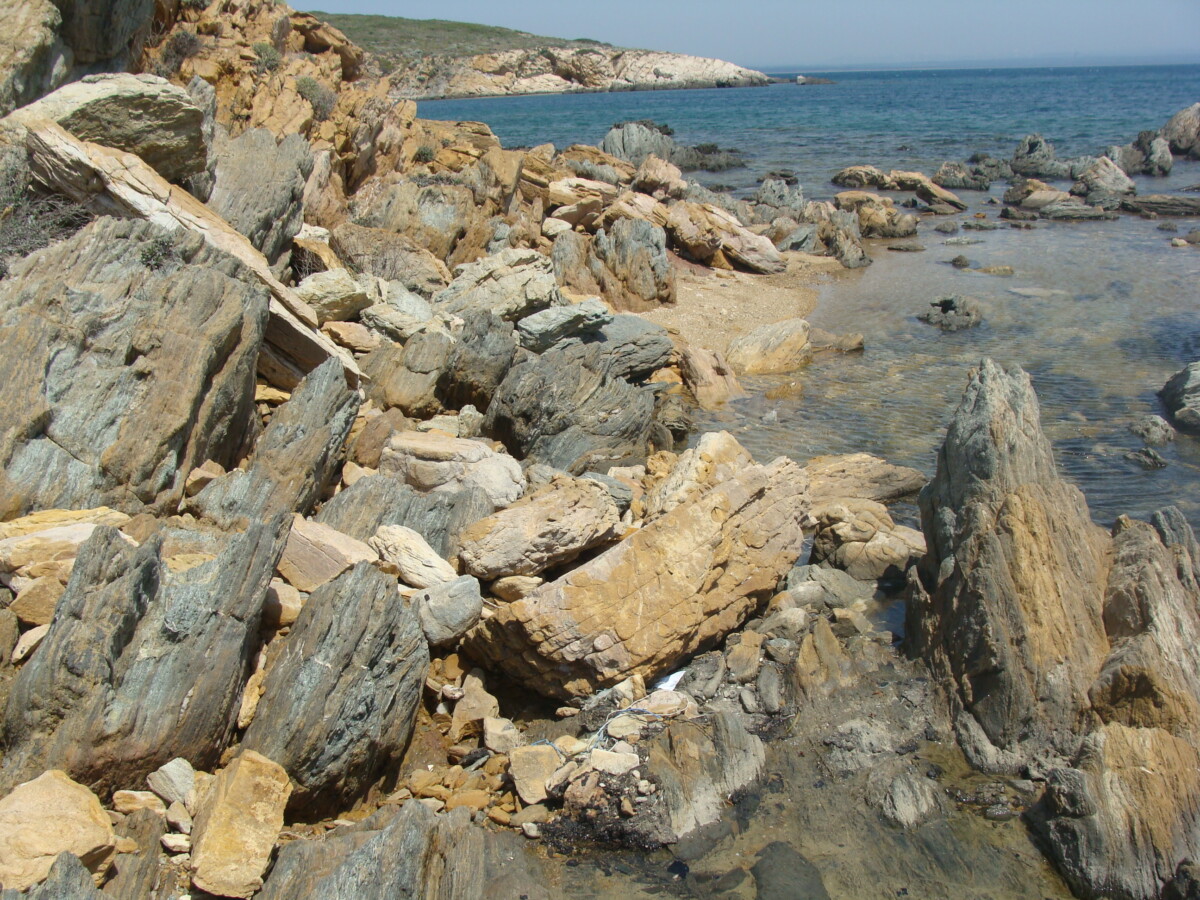 Onze laatste dag in Pelekas sliepen we een beetje uit – Maria ook, dus er was ook pas laat, 9.30 uur, ontbijt – de twee mannen waren vissen. En die kwamen nog tijdens het ontbijt met een mooie lading vis thuis. Allen even komen kijken en bewonderen: langoesten, inktvissen, tong, veel roodbaars, sardientjes… De rest van de dag genoten we afsluitend nog eens van deze heerlijk plek, probeerden via de rotsen de volgende baai te bereiken. Dat lukte niet, maar alles wat we aan zeeleven en ‘voelsteentjes’ ontdekten maakte dit ruimschoots weer goed. En heerlijk zwemmen in zee zorgde voor de nodige afkoeling. ’s Avonds hebben we dan met veel genot de fris gevangen zeevis gegeten. (…)