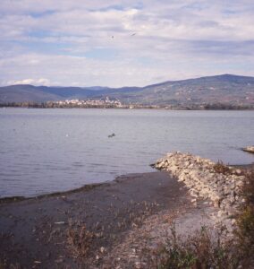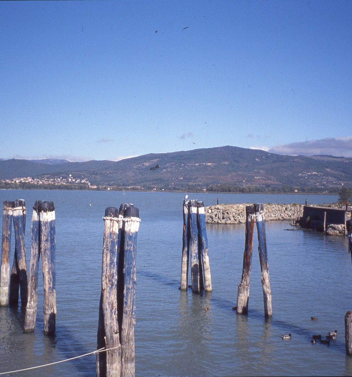 …”Al gauw trok natuurlijk ook het nabije eiland in het Lago di Trasimeno. Er was zelfs een verhaal in omloop dat ons kasteeltje ooit bewoond werd door iemand die verbannen werd van het eiland maar op zijn minst uitzicht op z’n geliefde eiland bedong (zoiets). Zittend op ons terrasje kunnen we het ook ter plekke bedacht hebben… Toen wij er op bezoek waren was het er heerlijk rustig, geen toeristen te bekennen, wel nog hier en daar de mogelijkheid iets te eten en te drinken.