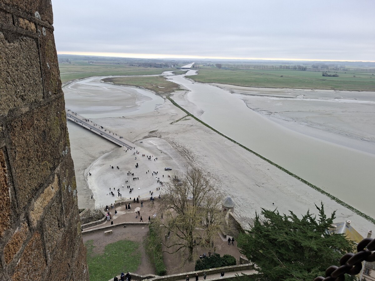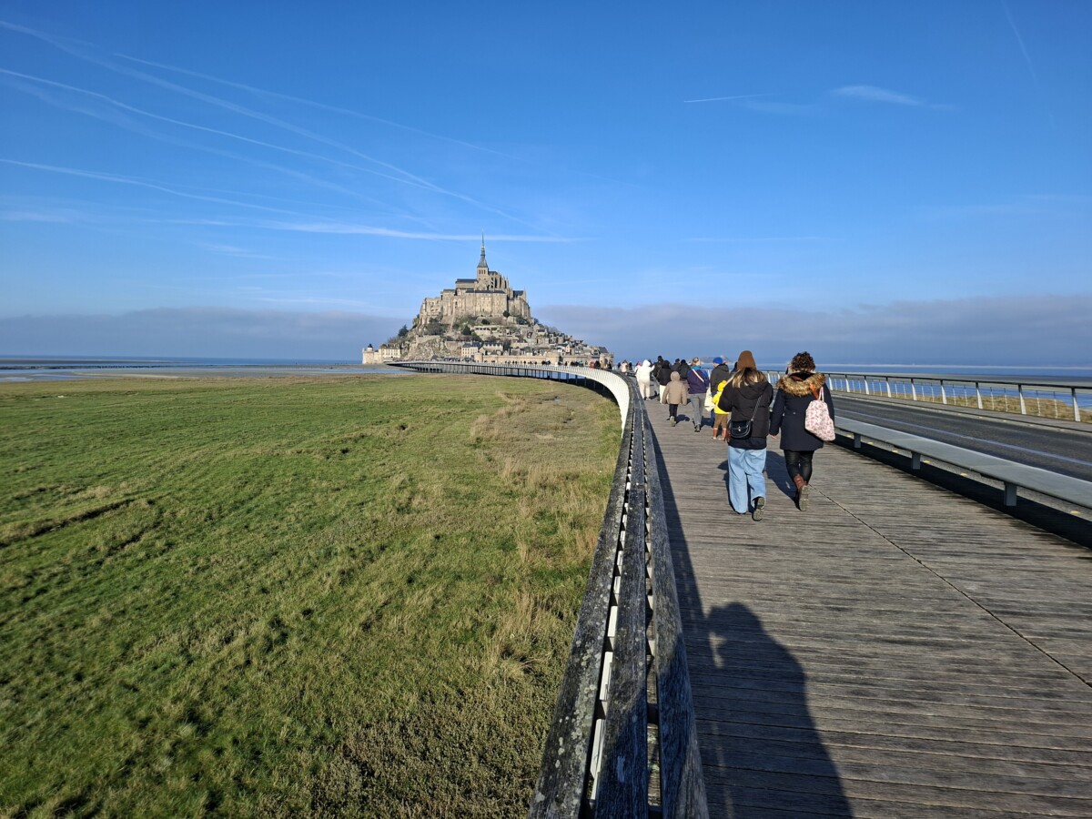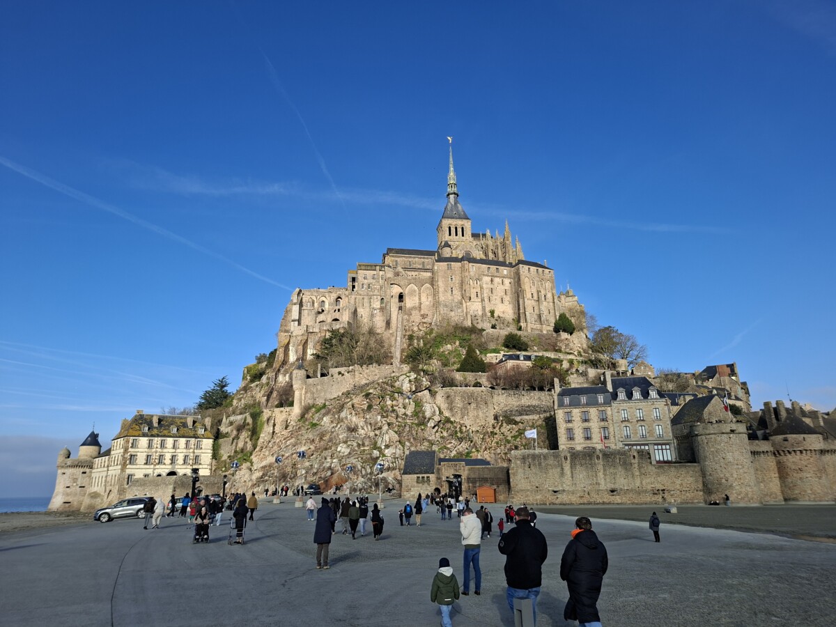 Heel streng genomen mag dit waarlijk iconische getijdeneiland op een granieten rots met een wereldberoemd klooster en dorpje niet in onze lijst opgenomen worden, maar als eindverantwoordelijken van deze website vinden we intuïtief dat er hier een uitzondering gemaakt mag worden. Al kan je nog zo comfortabel via een fraai gevormde brug het klooster en het supertoeristische dorp voor de Normandische kust bereiken. 28 december 2025 bezochten wij vanuit het dorp Pontorson in het kader van onze traditionele Kerst- en Nieuwjaarsreis de legendarische rots.