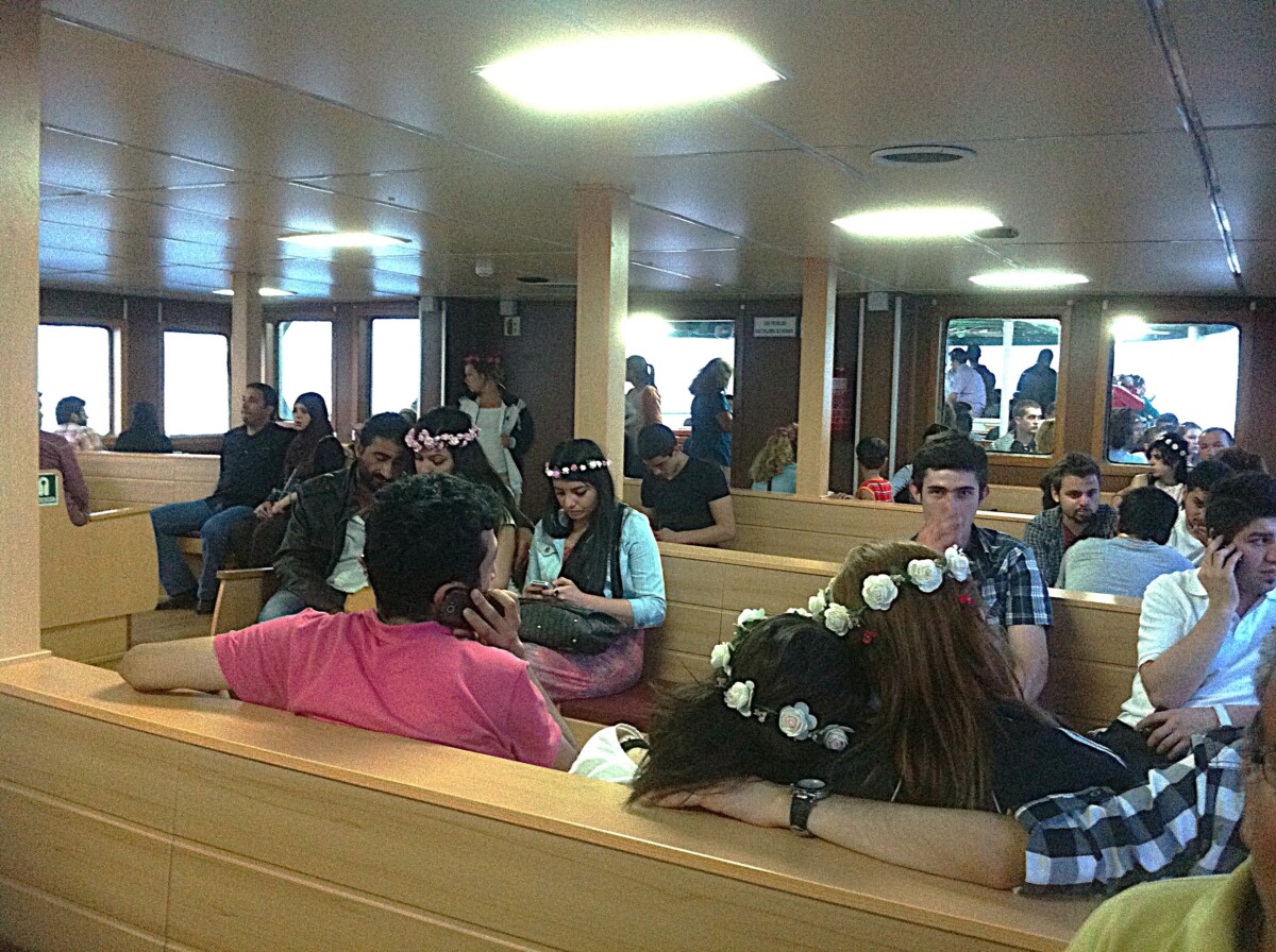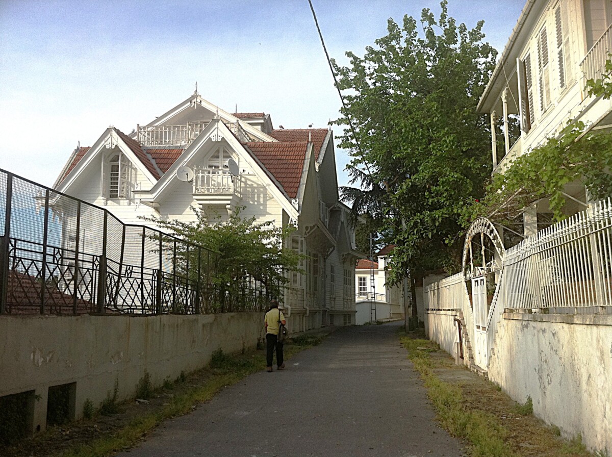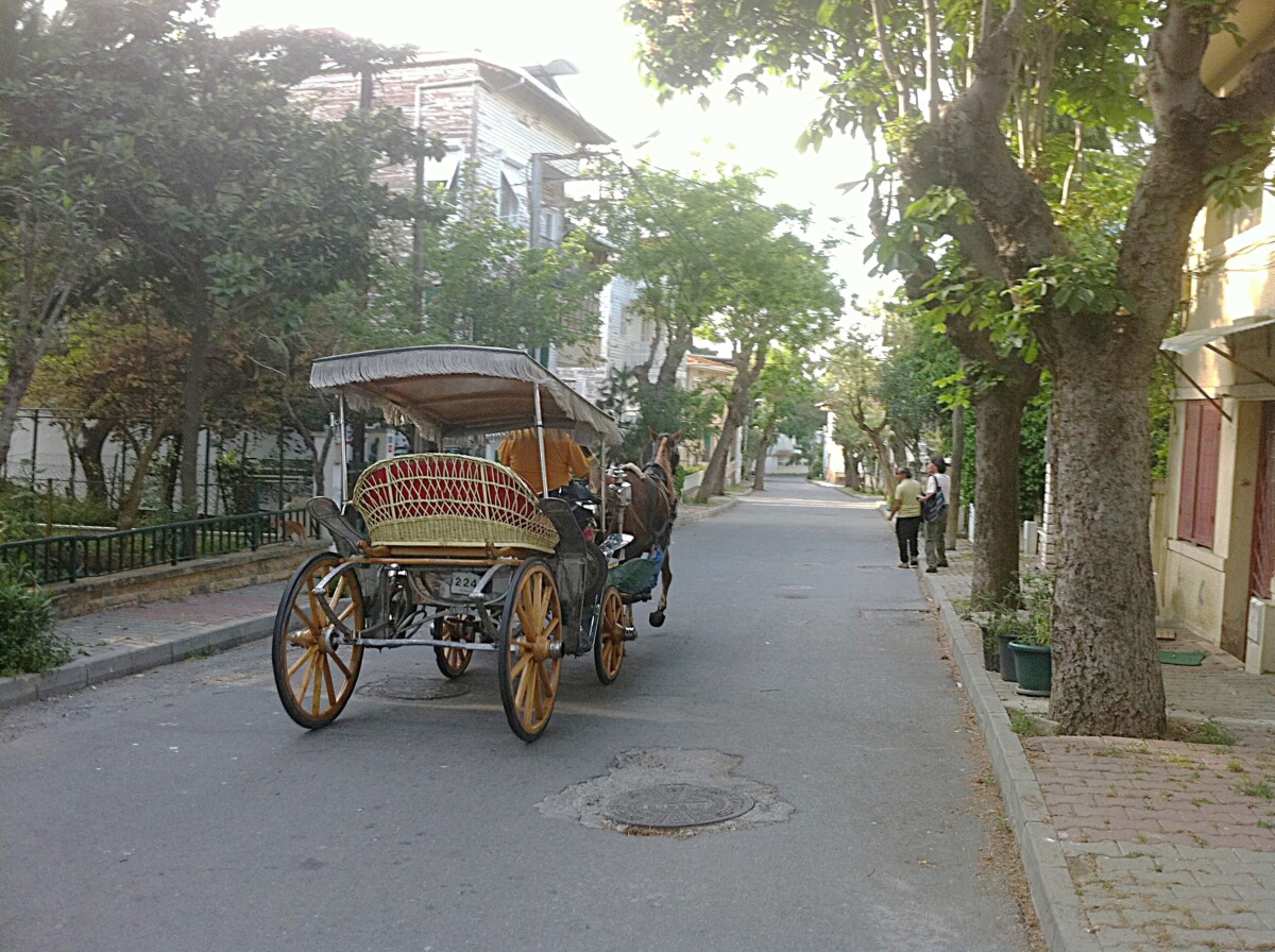 In de namiddag en vroege avond van 7 mei 2012 voeren we vanuit het oude centrum van Istanboel naar de Prinseneilanden. Het duurde een uurtje tot we het laatste eiland in een serie van 4 bereikten: het hoofdeiland Büyükada. Een eiland vol nostalgie, vol vergane glorie en nieuwe kansen. Prachtige lanen met grote houten villa’s, deels gerenoveerd maar sommigen ook complete ruïnes ‘onder het groen’. Veel koetsen, (transport)fietsen, elektrische driewielers, maar eveneens ruimte voor slenterende wandelaars. Veel zwerfkatten en honden. Maar toch ook ontroerende, door eilanders ingerichte rust- en eetplekken voor de verwilderde dieren. Algemeen beeld: ontspannen, toch actief en vriendelijk. Met de laatste boot van 20 uur kwam er een voorlopig einde aan onze eerste kennismaking met het hoofd-Prinseneiland. Op de boot veel vrolijke, jonge mensen: livemuziek, lachen, klappen, zingen en sentimenteel stemmende muziek. Een heerlijke afronding van onze tweede Turkije-reis!