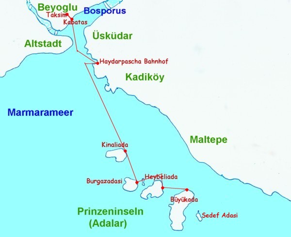 Deze eilandengroep in de Zee van Marmara, op korte vaarafstand van de ‘eindeloze’ stad Istanboel (16 miljoen inwoners volgens Wikipedia in 2024), bestaat uit negen eilanden, waarvan 4 met een stadje resp. dorpje.