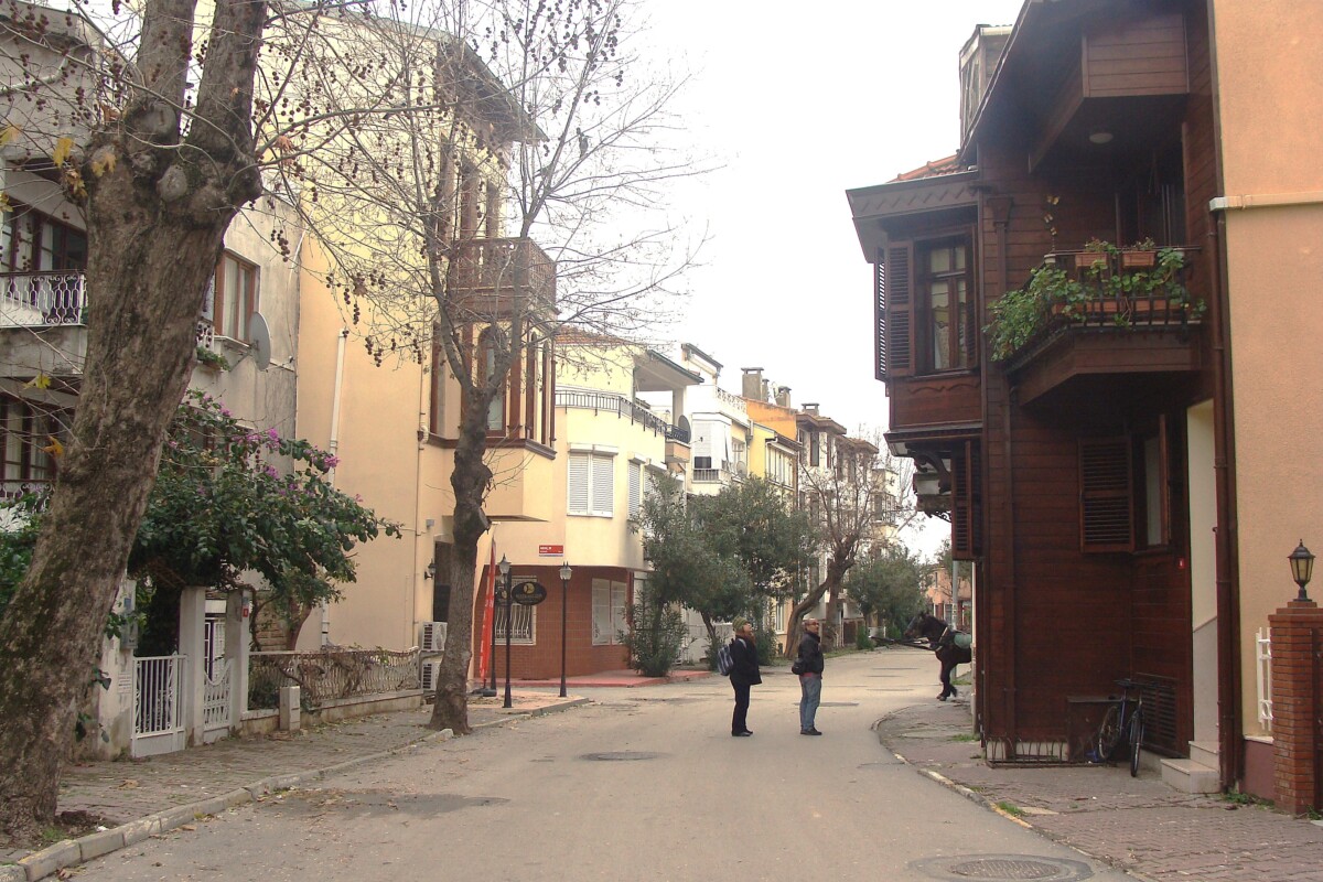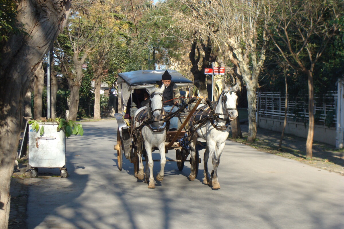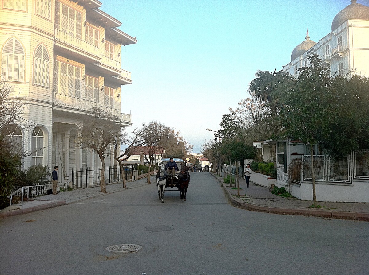 22 december tegen 13 uur om precies te zijn belanden we, na een boottocht van 70 minuten stroomopwaarts over de Bosporus richting de Zwarte Zee voor de tweede keer op het eiland Büyükada. Het bleef een aparte belevenis! Wij arriveerden in stijl bij het mooie Ottomaanse havengebouw (zie foto 1 en 7 helemaal beneden aan dit item) waar we hadden afgesproken met een appartement beheerder (2 in een huis, dus er viel iets te kiezen). Maar er was nog tijd voor thee en een tosti… We werden het snel met elkaar eens over het appartement, zeer gunstig gelegen in het kleurrijke, houten-huizen-eilandstadje Büyükada met zijn winkels en woonhuizen, paarden en wagens voor transport, koetsen als taxis e.d. Maar regelmatig zag je ook onbewoonde, vervallen spookhuizen in overweldigend, verwilderd groen, met veel zwerfhonden en -katten. We doorkruisten binnen enkele uren ongeveer de helft van het eiland inclusief ruige naaldbossen, mooie, wilde kust, strandjes, haventjes, en werden echt enthousiast over de mogelijkheden van het eiland (en de buureilanden). Met de boot van 17 uur voeren we weer terug naar ons 3e adres in Istanboel, onderweg met een beetje afstand dromend van een ‘Oase-project Turkije’ op Büyükada!
