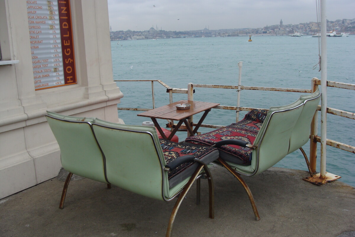25 december: Karim was de belangrijke christelijke feestdagen niet vergeten: lekker oriëntaals ontbijt, kaarslicht, tahinsaus met rozijnen, een poging Merry Christmas te zingen… ach, pakken, opruimen, en met veel geluk aan het begin van onze kofferroltoer stopte al een taxichauffeur naast ons die ons tot de boot naar de Prinseneilanden bracht. De boot die we namen was nog relatief vroeg en leeg, want hier was het gewoon dinsdag, een werkdag in december! En we voeren in het begin langs prachtige panorama’s – de werelderfgoed uitzichten van Istanboel: het Topkapi-Paleis, de Blauwe Moskee, de Agia Sophia,