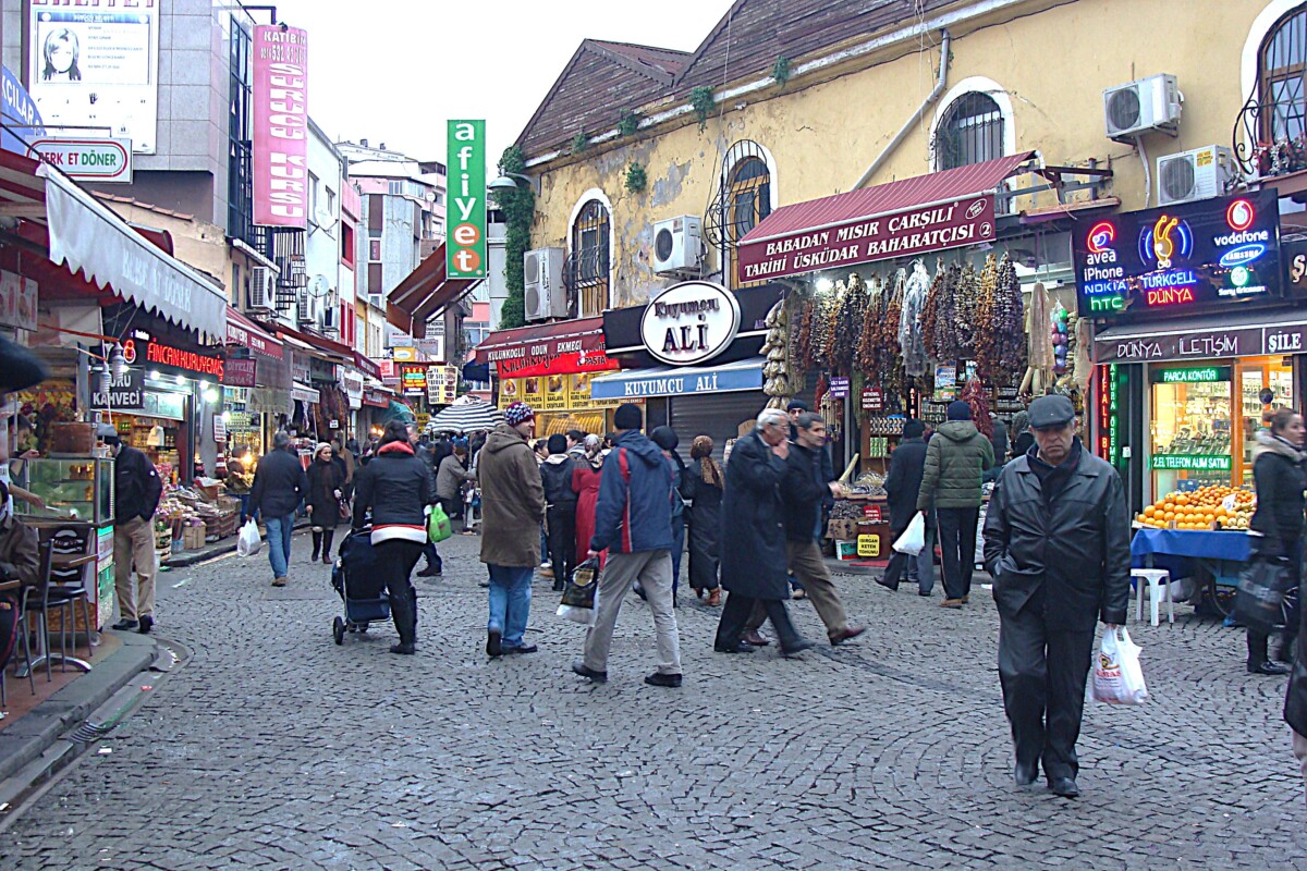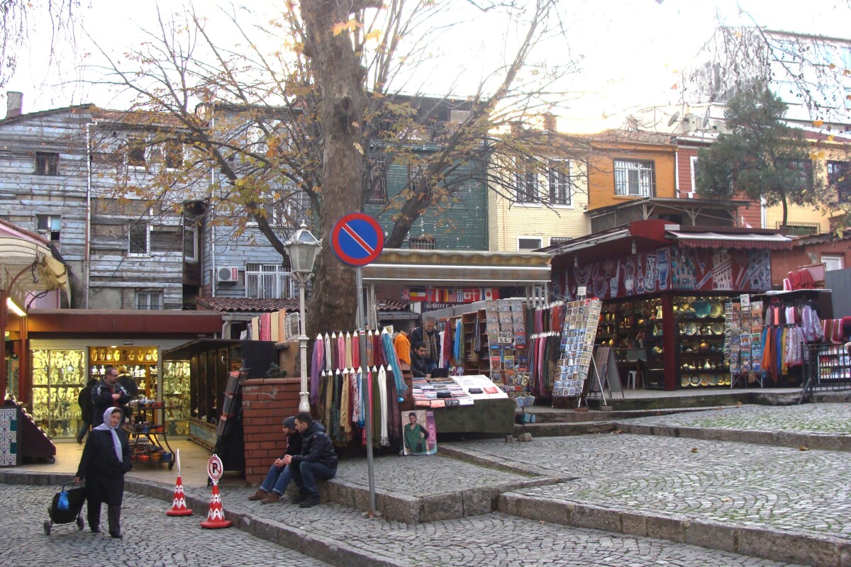 23 en 24 december hebben we nog verder intensief kennis gemaakt met de hoofdattracties van toeristisch Istanboel: het Paleis van de Sultans, het Dolmabahce Paleis; we kozen, zonder Karim er bij (dit was voor hem te bekend allemaal), voor een Engelstalige rondleiding langs de eindeloze ruimtes en zalen, badruimtes etc. met waanzinnige kroonluchters en eindeloze slaapvertrekken en hemelbedden, van de HAREM. Ook spektakel kan saai worden… Samen met Karim dan naar de tegenover gelegen wijk Üsküdar; weer een enorm grote en drukke wijk, iets lagere bebouwing, met regelmatig fraaie uitzichten op de Bosporus. Thee gedronken langs een geïmproviseerd theepaviljoen langs deze fascinerende, ja wat eigenlijk: rivier, verbinding tussen twee zeeën??? Vervolgens voldoende uitgerust door de wirwar van winkelstraten boodschappen gedaan voor de komende dagen. Flink bepakt terug naar onze tijdelijke woonwijk Cihangir, spullen naar huis gebracht, uitrusten en dan weer wandelen, klimmen door de bekende toeristenwijk Taksim.
