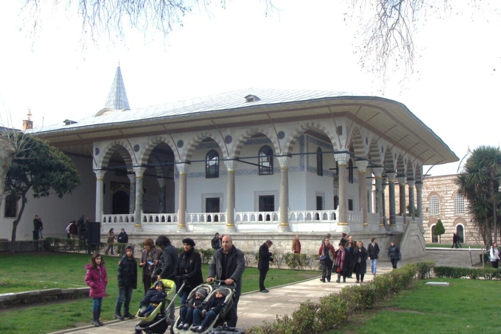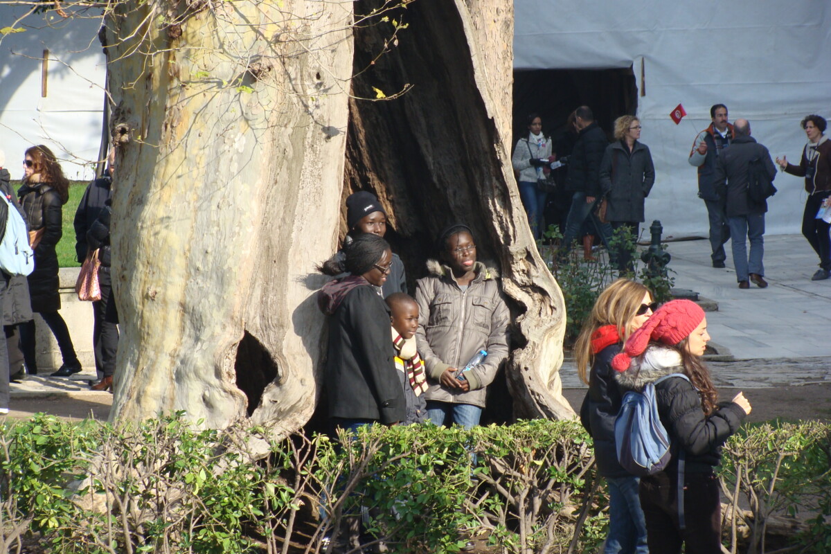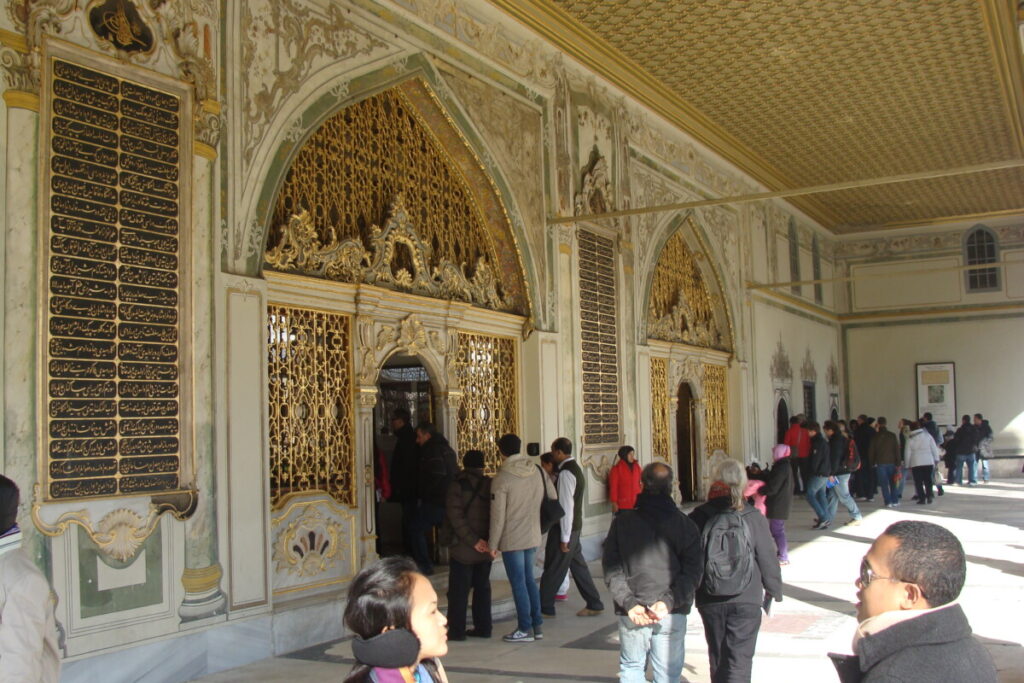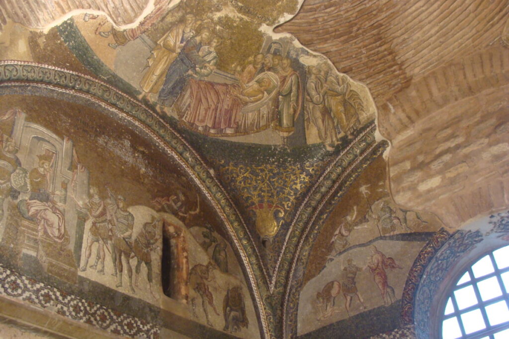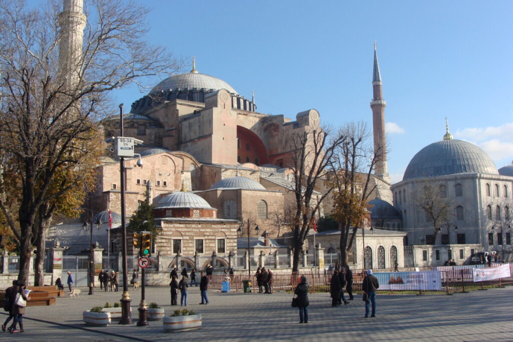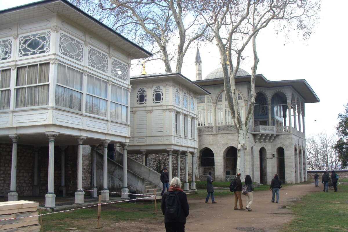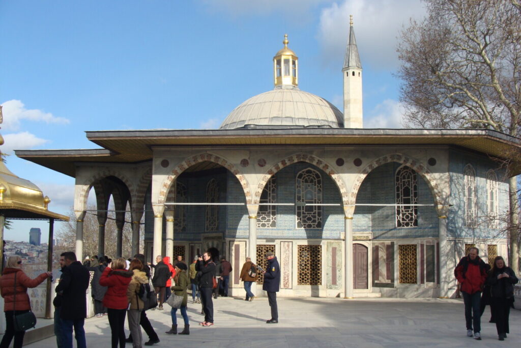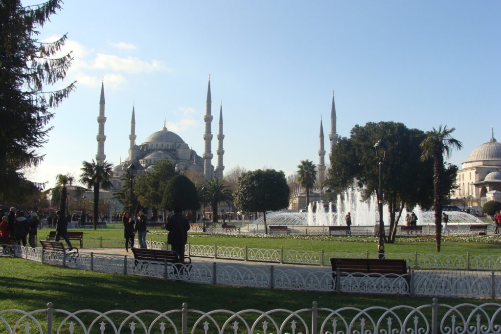 24 december, de dag van kerstavond in oriëntaalse sfeer, op bezoek bij het Topkapi-paleisterrein: wandelend van hof naar hof en tussenin kleine paviljoens, paleisjes, badhuizen, kiosks, parken, terrassen naar de Bosporus toe, musea, schatkamers… een hele eigen wereld à la Alhambra in Granada, maar dan toch weer heel anders. Prachtig, maar ook in december nog behoorlijk druk: wat er nog aan toeristen rond de jaarwisseling in Istanboel verblijft kom je hier wel tegen. Voor de rest is Istanboel zo gigantisch groot dat je nauwelijks toeristen ziet. Na de paleis- en parksferen wandelden we vervolgens door de wijk Sultanahmet op zoek naar een druk bezocht en beroemd restaurant met een eenvoudige kaart (kende Karim nog van vroeger). Hier hebben we geluncht voor we met de tram naar het station Aksaray reisden op zoek naar een reuze aquaduct uit de Romeinse tijd. Heel indrukwekkend, maar wel teveel verkeer in de directe omgeving. Per bus dan op zoek naar een unieke orthodox-christelijke kerk met prachtige fresco’s en mozaïeken: Kariye Camii en vlakbij ook nog een indrukwekkende moskee, Sultan Külliyesi – van binnen net fraai gerestaureerd – bezichtigd. Wandelend door wijken en buurten met eindeloos veel relatief kleine huizen, winkels etc.: wijk Fatih, en de buurt Fener. Langs de Gouden Hoorn was het verkeer te druk, dus iedere keer liepen we weer terug in fraaie, kleinschalige winkelwijken richting Ayakapi en Cibali. Mooi!! Bij de 2e brug, de Galatabrug, doodmoe, maar ook zwaar onder de indruk in een sneltram richting ’thuis’, halte Eminönü, gestapt.