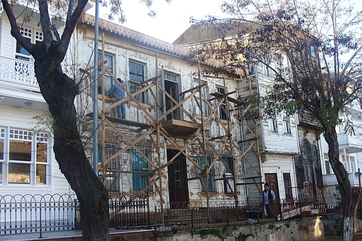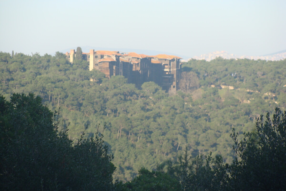 27 december: ´s Ochtends kijken naar de vertrektijden voor schepen richting Istanboel, maar dan naar het stadsdeel dat recht tegenover het eiland ligt. Tegen 11 uur hadden we een afspraak met onze verhuurder, wandelen en kijken naar 4 appartementen: de sterktes van elk appartement in een project gebundeld zouden een prima verblijfsadres voor gestreste Oasevrienden kunnen vormen, maar elk appartement apart kende nog heel wat verbeterpunten. In de komende dagen zullen we kijken of we nog ergens met een appartement dichter bij het ideaal komen. Bij zoveel algemene en winterse leegstand… Maar eerst even lunchen, daarna de mooiste van de drie moskeeën van het eiland, Hamidiye Moskee bezoeken voor we dan aan een lange wandeling/klim naar het hoogste punt van het eiland – op een beboste heuvel van pijnbomen met mooie ondergroei – naar een Grieks-Orthodox klooster (nu museum) Aya Yorgi Kiliseri begonnen. Tussendoor langs een vervallen gigantisch houten gebouw (ooit Grieks weeshuis, maar ook b.v. een legeronderkomen), Rum Yetimhanesi. Nu een bouwval, ooit het grootste houten gebouw van Europa (5 verdiepingen hoog gemiddeld, haast 1 km gebouwen!).