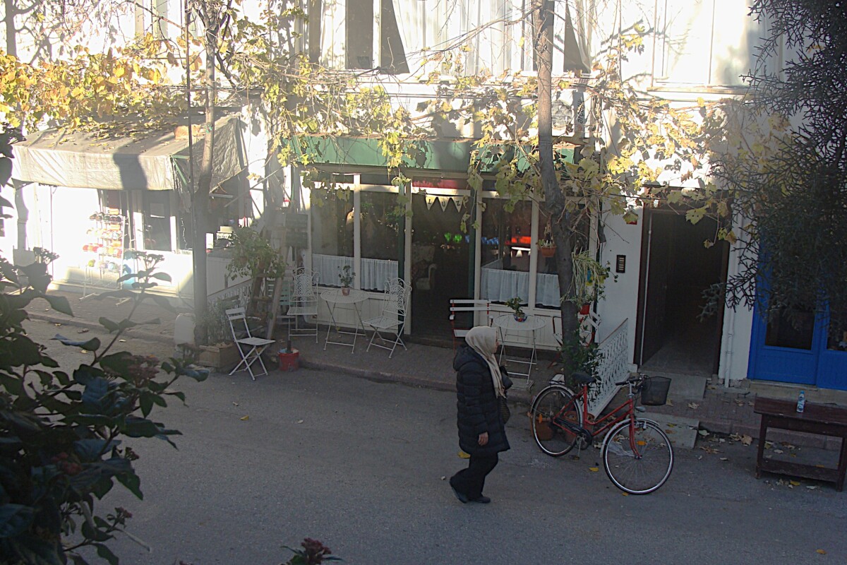 voor we tegen 11.25 uur, na ruim een uur varen, op ons volgend station belandden: Büyükada, dat betekent het ‘Grote Eiland’! Helderblauw, zonnig weer, 10 °C.! Warmer nog toen we uit de boot stapten en in de zon even moesten wachtten op onze appartement-baas. Dan gauw samen naar ons tijdelijk adres op het eiland, wat mankementen aan de eigenaar gemeld en dan maar wandelen