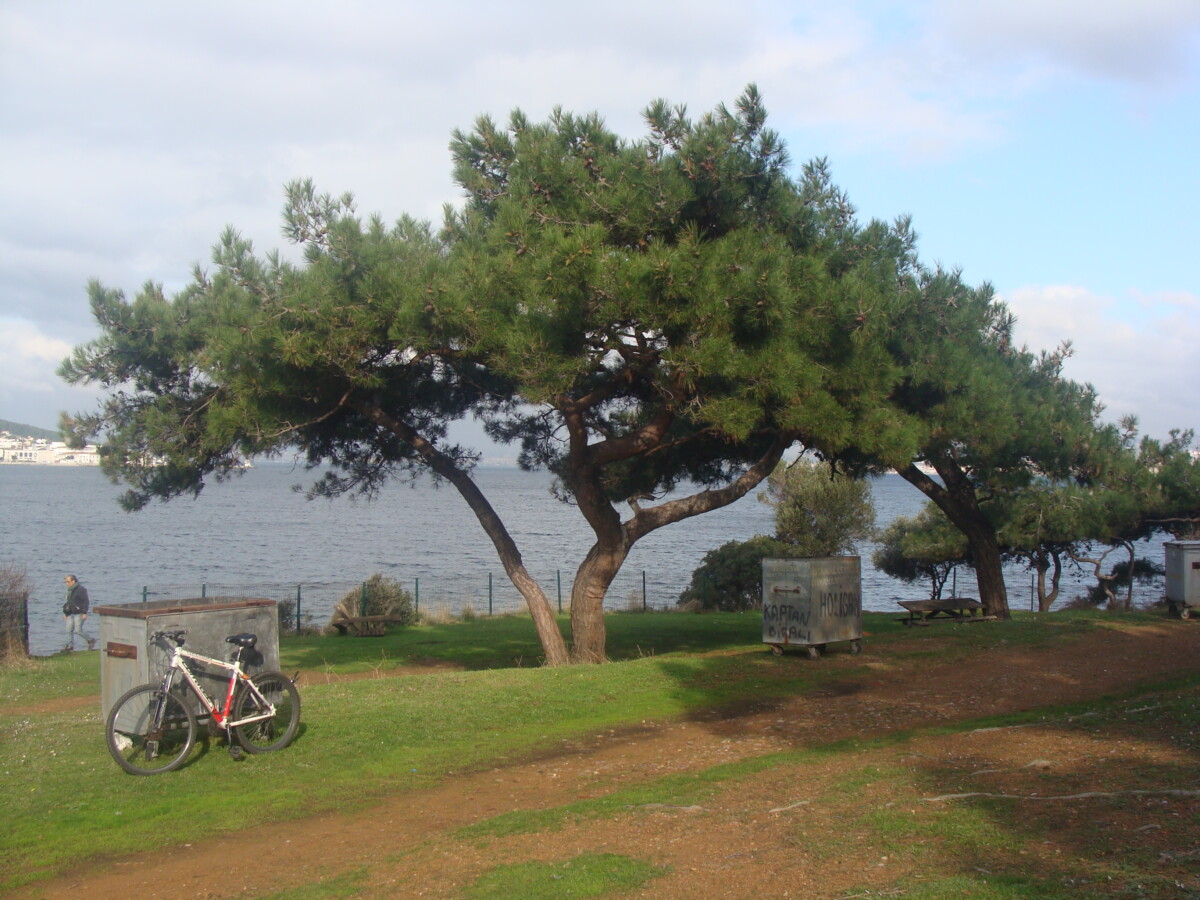 30 december: Voelden Karim en Willy zich fit genoeg voor een eilandverkenning per fiets. De zuidelijke helft bleek pur natuur: pijn- en cipressenbossen, veel kruidige beloftes in de ondergroei, prachtige kust en reliëf, mooie rotsen, nauwelijks gebouwen of mensen! Heerlijke vergezichten over de Zee van Marmara en de wonderlijk fraaie kleur- en vormenrijke kust.
