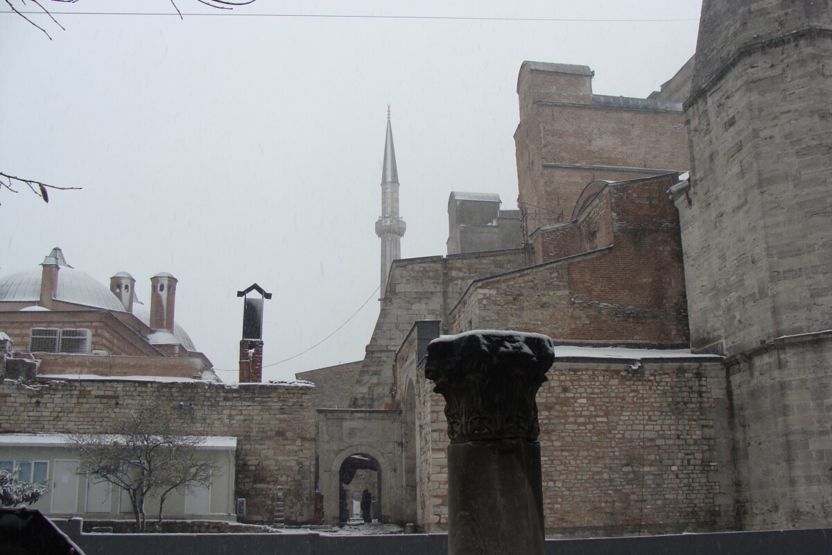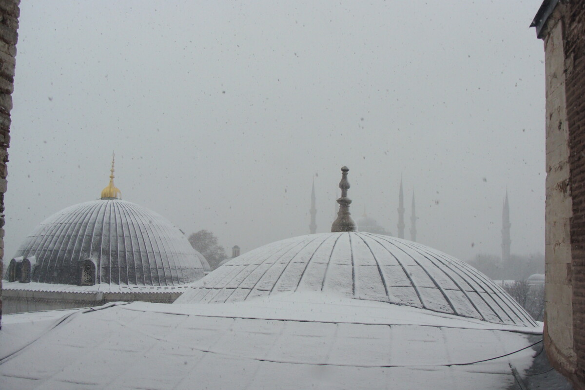 Ook deze keer naderden we de Prinseneilanden weer vanuit Istanboel waar we toen al drie dagen lang op toeristische verkenningen (en Karim op ´nostalgische verkenningen’) waren geweest. Winters weer met natte sneeuw, voor de eerste keer in de prachtige Hagia Sophia en nog twee andere fraaie moskeeën, afgewisseld met gezellige eet- en drinkgelegenheden die Karim nog van eerdere bezoeken aan Istanboel kende en die ons o.a. bekend maakten met de heerlijke, verwarmende winterse drank Salep.