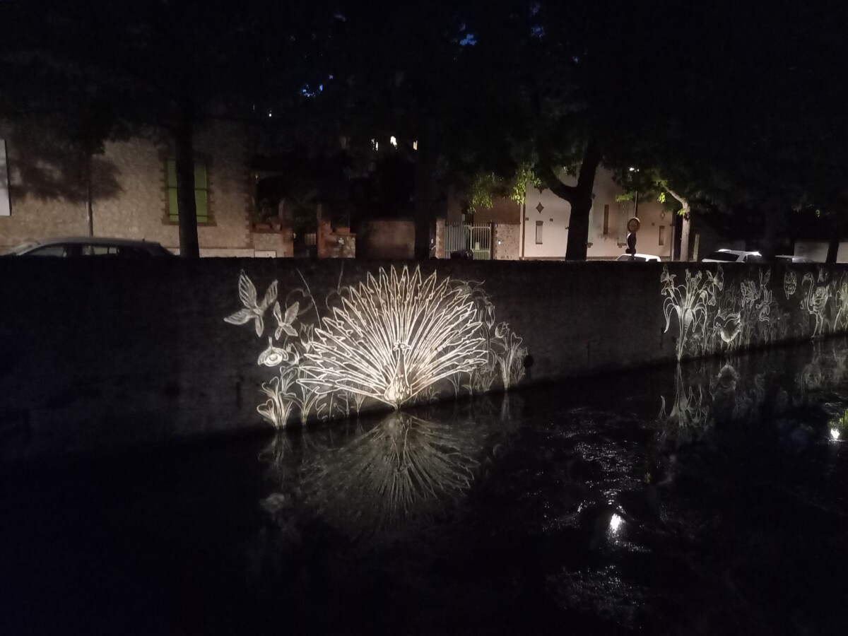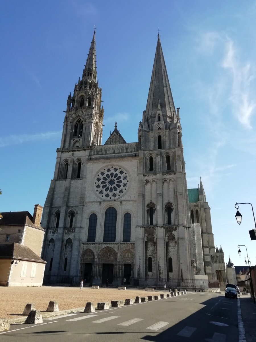 De treinreis naar Chartres was er een om snel te vergeten: zeer stressvol, vooral door stevige vertragingen en een gecompliceerde overstap in Parijs van Gare du Nord naar Gare Montparnasse. Toen we uren na de verwachte tijd aankwamen was het dus al donker en het kostte enige moeite om het appartement, gelegen in de duistere oude binnenstad te vinden. Toen we langs de kathedraal kwamen bleek die kleurrijk verlicht te worden. Een lichtshow. We schrokken daar in eerste instantie van. Maar later hebben we toch de tijd genomen om deze show op de voor- en zijkant van de kathedraal en andere iconische gebouwen en bruggen, uitgebreid te bekijken.