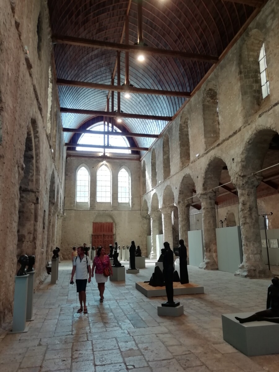 Heel bijzonder was ook een bezoek aan de voormalige abdij St. André, gelegen langs dit riviertje. Die was helemaal ‘gestript’ en bood nu ruimte aan een bijzonder interessante kunsttentoonstelling van de beeldhouwster Brigitte Pelen. Ook dit gebouw en deze kunst imponeerden ons dusdanig dat we er een paar dagen later nog eens naar terug zijn gegaan.