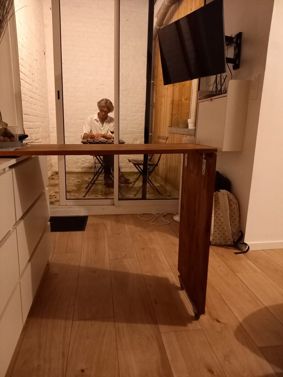 We boekten een appartement in de levendige wijk Wazemmes. Dit appartementje was een wonder van efficiëntie: op 25 vierkante meter waren alle functies aanwezig die je in een vakantieappartementje verwachten kan: keukenhoekje, zitje, eettafel (moest wel eerst uitgeschoven worden), een mini badkamertje, een aparte (!) slaapkamer en zelfs een kleine patio voor de broodnodige frisse lucht / afkoeling. Om de hoek was een heel gezellig jeu de boulespleintje. Op korte afstand ook twee metrohaltes en winkels. Die metro was zelf ook al zo’n wonder van efficiëntie. Met (heel betaalbare) tickets kwam je makkelijk door de poortjes en ook het instappen was goed geregeld. En toen bleek- tot onze grote verrassing dat de metro van Lille zelfsturend is! We hebben deze metro regelmatig gebruikt bij onze verkenningstochten door Lille.