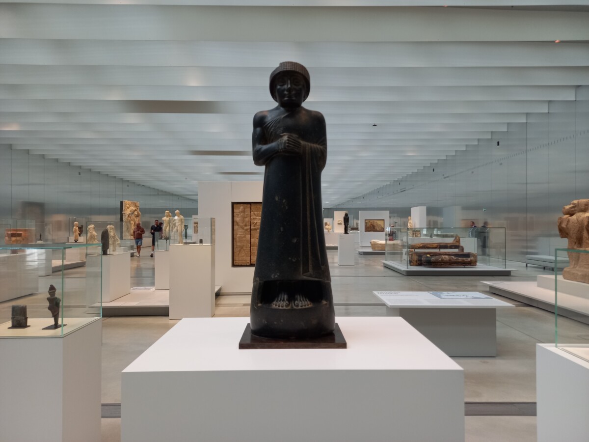 In Lens bevindt zich het heel bijzondere museum Louvre Lens. In de enorme museumshal kun via een tijdlijn van 3000 jaar slalommend veel topstukken, uitgeleend door het Louvre, bekijken. We hebben er geen spijt van gehad dat we na ons bezoekje aan Arras daar ook nog zijn gaan kijken! De route ernaartoe vanaf het station was een ‘groene route’ en het museum zelf ligt ook in een park met kunst, bloemenweiden, picknickbanken etc.