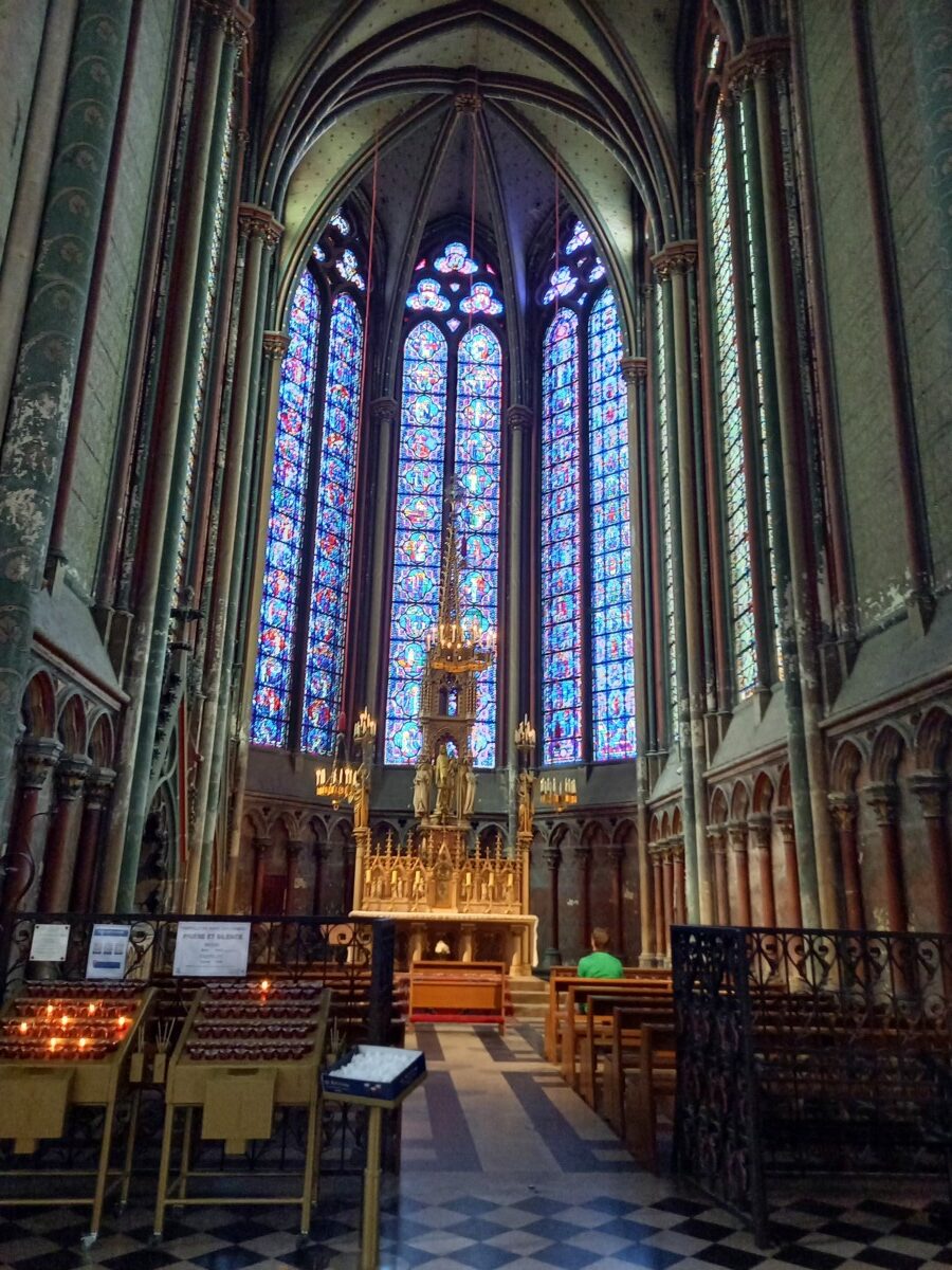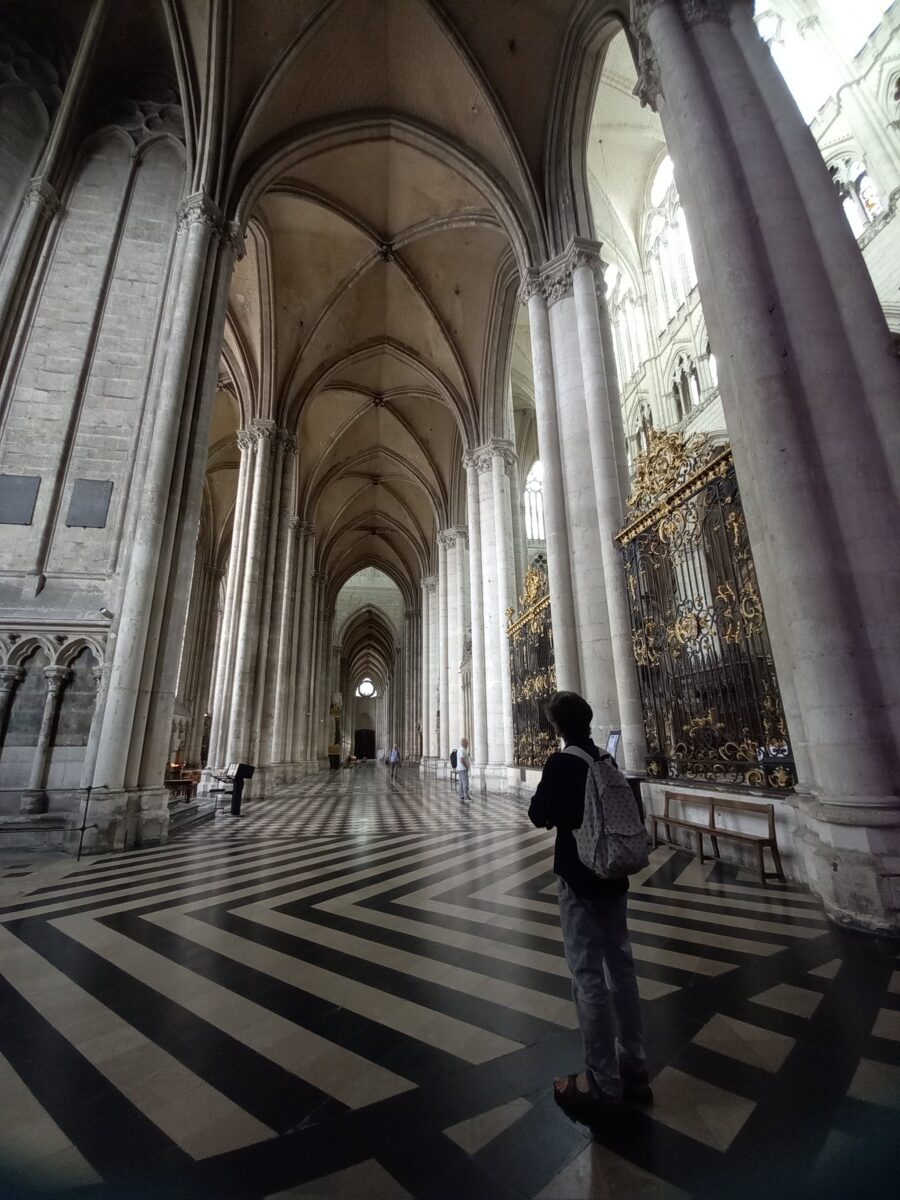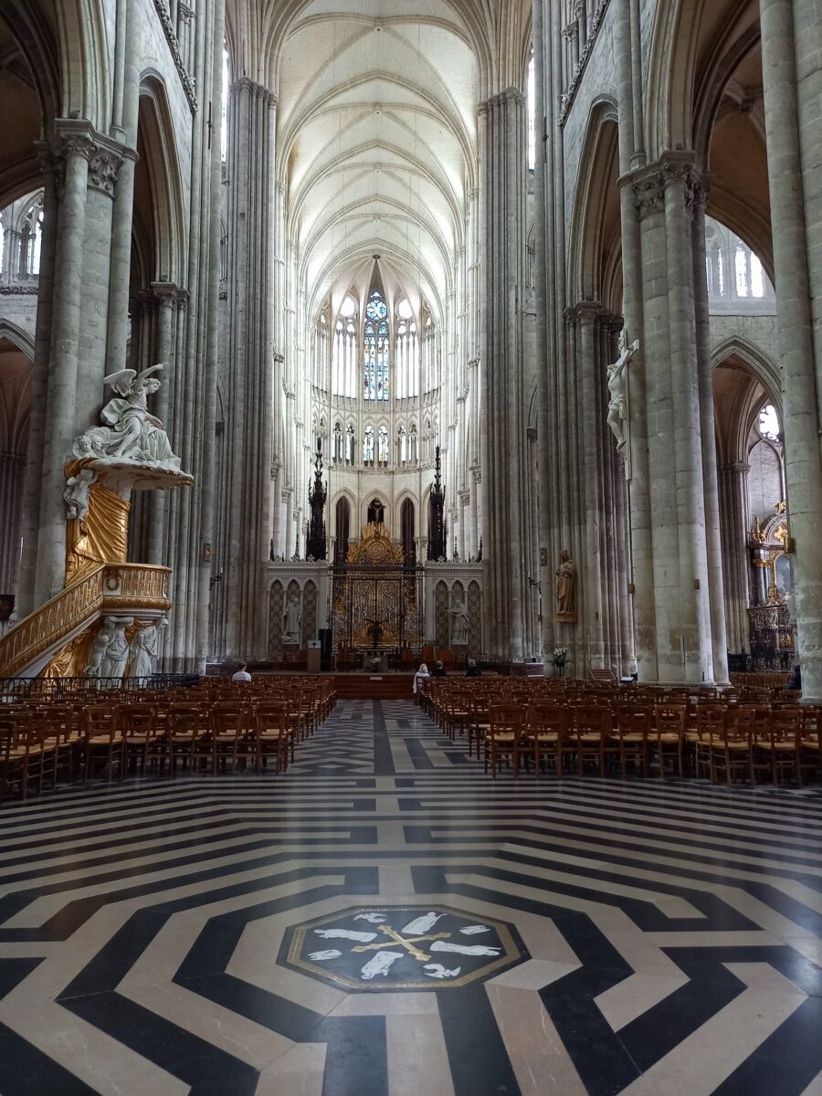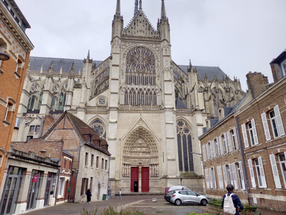 Op de verjaardag van Stichting Oase kozen we – eindelijk – voor een dagje Amiens. Nu wisten we inmiddels wel precies hoe laat die trein ging en we waren er dus ruim op tijd. Ondanks dat de trein onderweg lang stil stond, hadden we voldoende tijd voor ons bezoek aan Amiens. Hoogtepunt – in alle opzichten – was de 13e eeuwse kathedraal, de grootste gotische kathedraal van Frankrijk. We hadden natuurlijk niet zoveel tijd voor deze kathedraal als 2 jaar eerder in Chartres, maar desondanks waren we onder de indruk van de harmonische schoonheid van binnen en van buiten. Gelukkig goed gerenoveerd na de beschietingen en bombardementen in de beide wereldoorlogen. Dat gold niet voor een groot deel van de binnenstad. Daar werd vooral gekozen voor nieuwbouw na de oorlog.