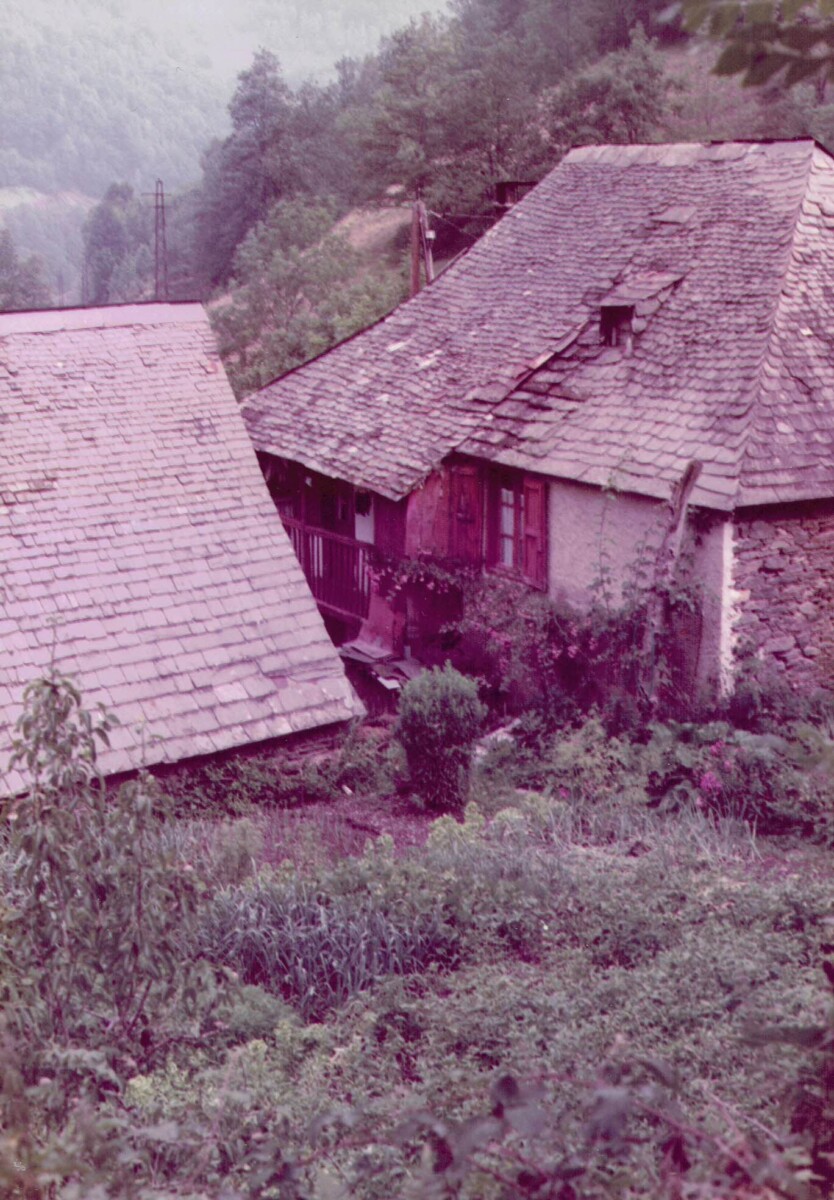 Alain, die ongeveer 25 was en in Saarbrücken als timmerman was opgeleid, sprak naast Frans ook het Duitse dialect van Lotharingen. Marbouba kwam uit Frans Polynesië en sprak voornamelijk Frans. Toen Alain ons liet zien hoe hij op zijn erf waterbronnen ontdekt had (met een wichelroede, wij probeerden het ook, maar ‘voelden’ het water niet), wisten we even niet meer in welke eeuw we leefden… Elektriciteit en riolering hadden ze niet, de dichtstbijzijnde weg was minstens een kilometer bij hen vandaan. Dus elke steen, ieder stuk hout dat niet direct in de buurt te vinden was, moest via steile ezelspaden, dwars door een beek naar hun grange gebracht worden. Ze gingen nu nog ’s winters terug naar de stad (Toulouse), waar ze aan de kunstacademie studeerden, maar ze waren serieus van plan om hier ooit permanent te gaan wonen. Dat is nog eens een ander leven! Volgens Ton-hi en Brigitte woonden er in deze streek mensen nog geïsoleerder dan Alain en Marbouba: drie kwartier lopen, hoog in de bergen, met wat schapen en geiten. Mensen die probeerden echt autark te leven, onafhankelijk, vrij, maar arm.