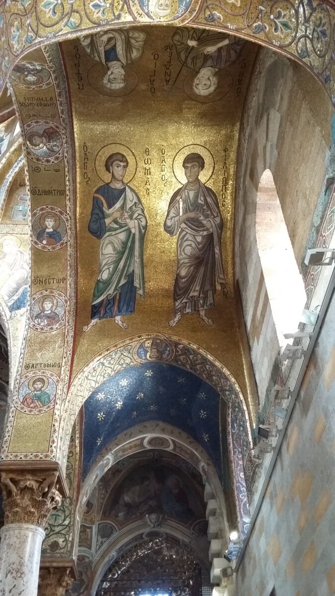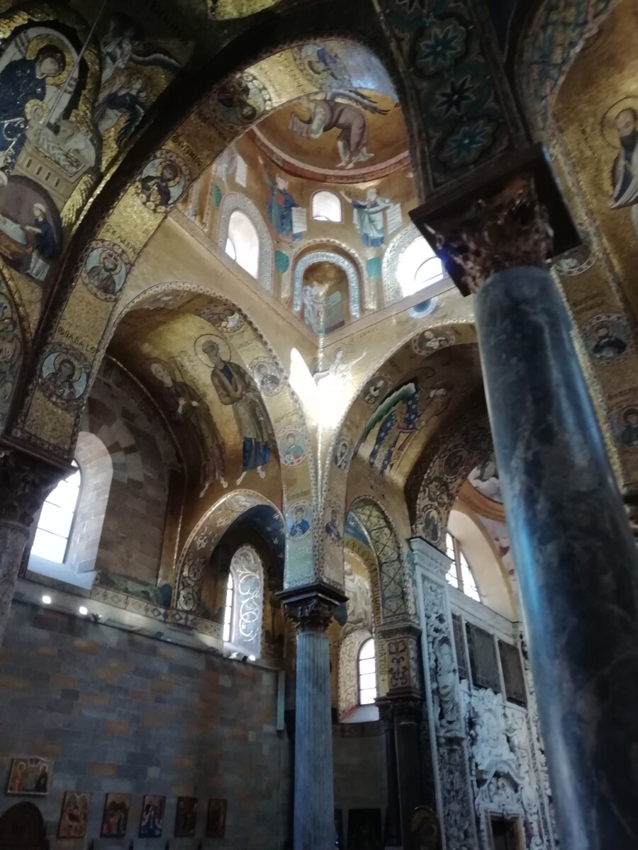 Onvoorstelbaar in Italië, dus we bleven ons verbazen over deze vaak verguisde stad. Het was een verademing overal autovrij/autoluw te mogen flaneren! Indrukwekkender nog dan de kathedraal waren de beide oudste, Moors-Normandische gebouwen uit de 12e eeuw, San Cataldo en La Martorana (of: Santa Maria dell’Ammiraglio) . Het eerste gebouw was geopend: we hebben in dit gebouw met drie koepels en veel prachtige Moorse elementen alleen maar stilzwijgend zittend genoten. Hoe klein, maar wel fantastisch de ruimte ook was.