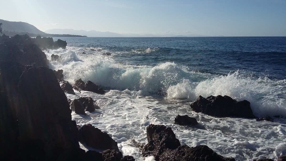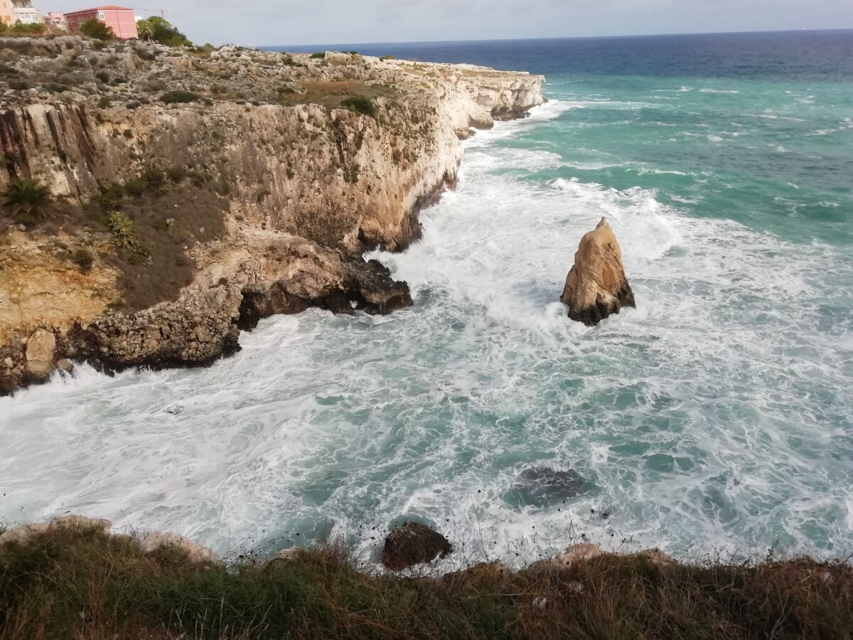De kust is nooit ver weg in Syracuse en we werden dan ook, slenterend door de mooie oude stad weer getrokken door de ruige zee: metershoge schuimende golven sloegen tegen de stadskades en rotsen die de oude stad beschermen en dragen. Een prachtig, nooit vervelend schouwspel dat je in Syracuse langs kilometers straten, autoloze boulevards en rotsjes in de kust, via trappen en bruggen bereikbaar, veelvuldig kunt beleven!