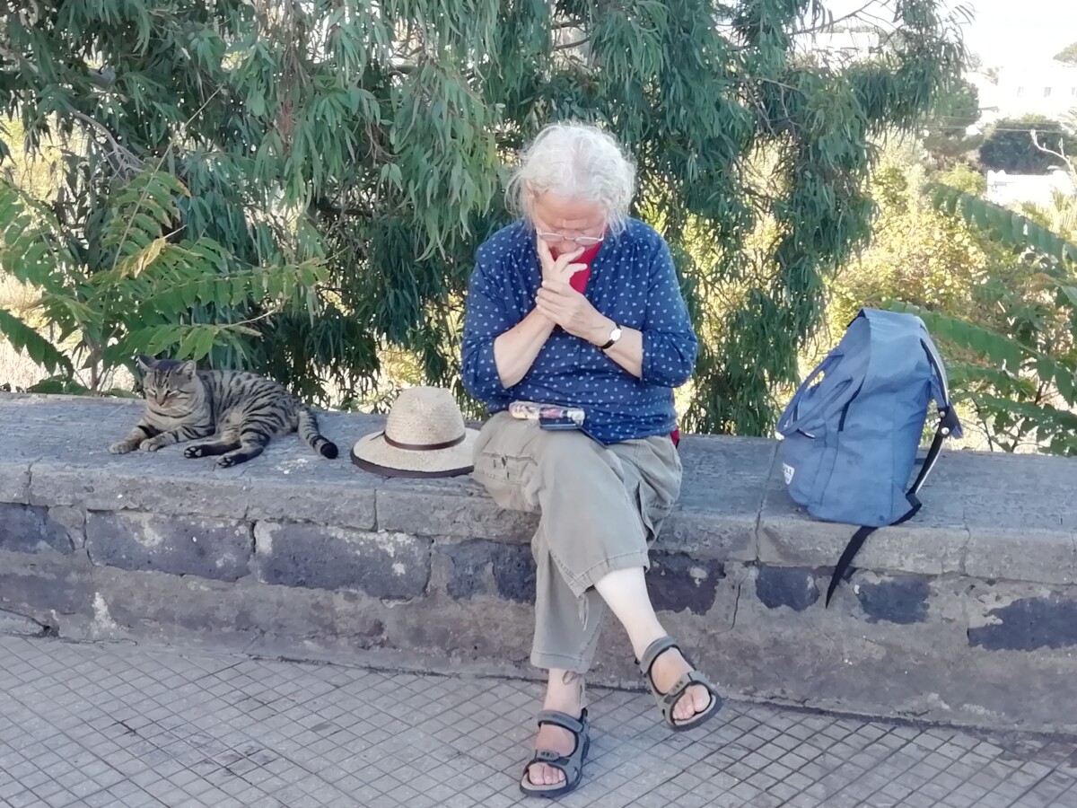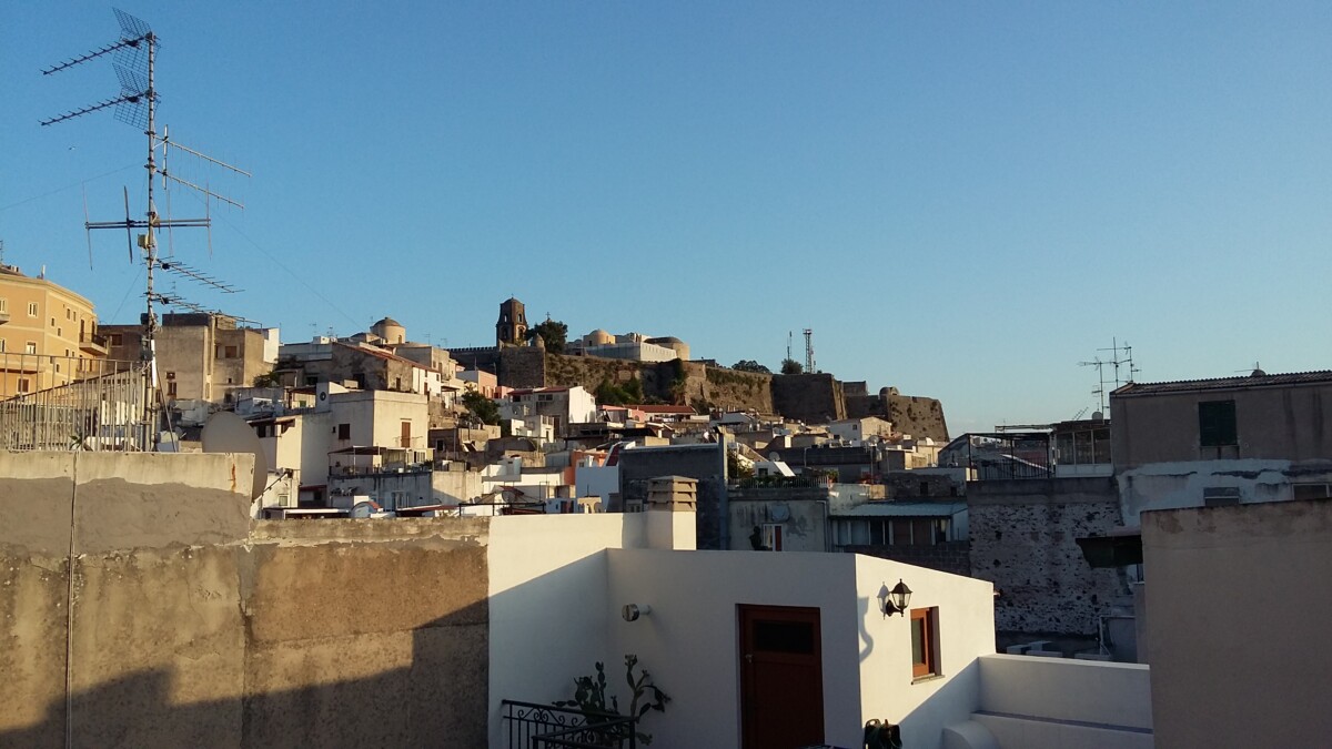 Het is een wonderlijke wereld ‘daar boven’ op de stadsheuvel, de uitzichten zijn overal heerlijk – zee, stadje, een zee van dakterrassen alleen al, en het verdere eiland – maar veel straalt ‘vergane glorie’ uit, is toe aan renovaties, nieuw elan! Deels gebeurt dat ook wel. Deze site is potentieel van topkwaliteit, maar werd nu nauwelijks bezocht. Terug thuis, klopte onze pensionbaas Bartolomeo op de deur. Even afscheid nemen m.b.v. Google translate maar toch ook nog even 3 kusjes op de wangen. Alle drie blij dat wij leuke dagen hebben gehad!