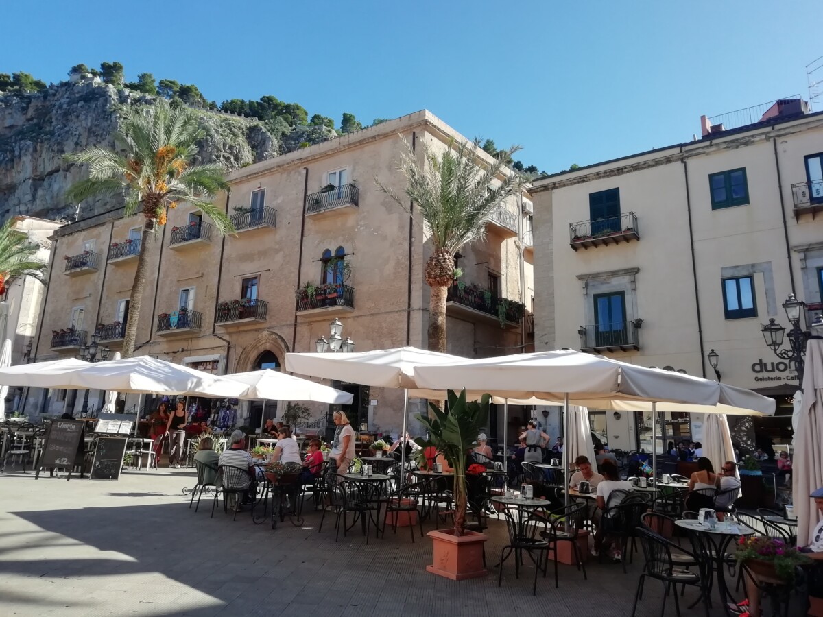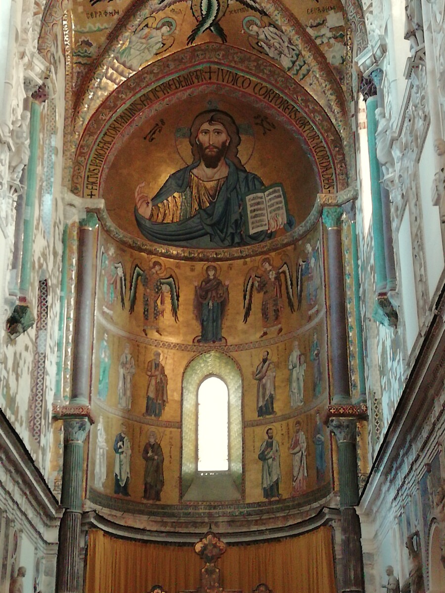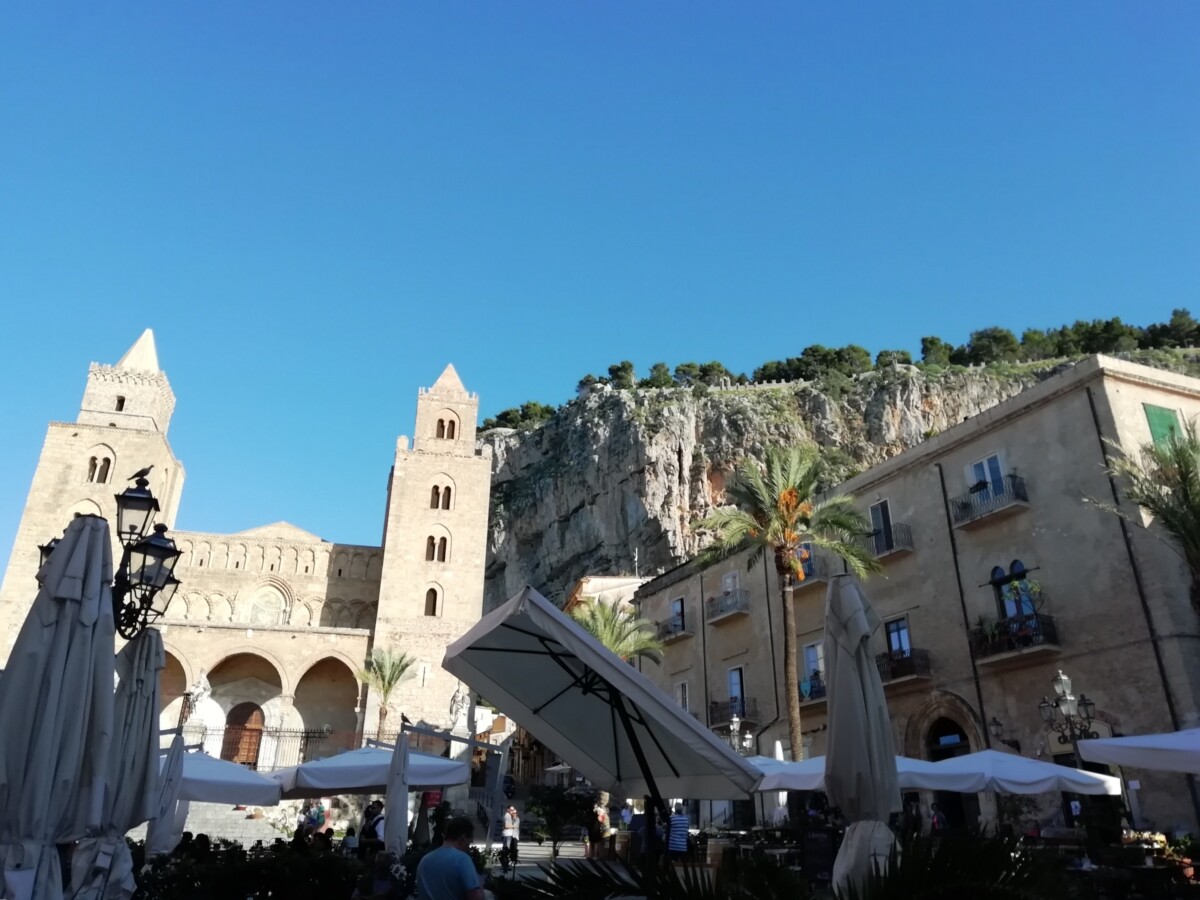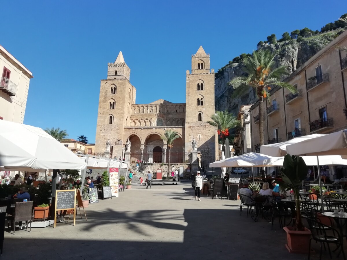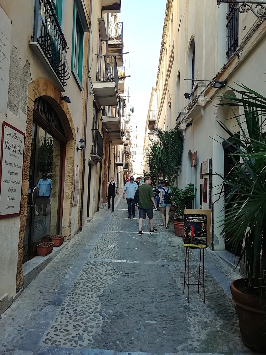 Daarna, tussen 14.30 – 17.30 uur, namen we ons de tijd voor een uitgebreide verkenning van deze zeer charmante badplaats op een prachtige locatie met veel uitzonderlijke verrassingen. Van ons woonverblijf, gelegen in een buurt met behoorlijke middenklasse woonhuizen en dure, ingetogen winkels, wandelden we naar de kleine, fraaie binnenstad met mooie straten, een plein met een vrij nieuw stadhuis (1957) tot de architectonische topper, een Normandisch-Arabische kathedraal (UNESCO werelderfgoed). Hoe kan zo iets in een klein stadje van 15.000 inwoners?? Volgens de legende werd hij gebouwd na de belofte van een heerser, Rogier II, de eerste koning van Sicilië (1095 – 1154), die hij deed na het overleven van een wilde storm op zee. Ach, hoe het ook zij, de pracht en praal is nu nog ruimschoots te zien!