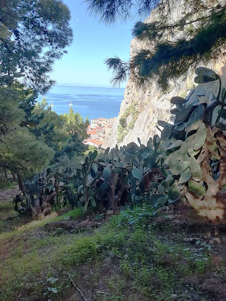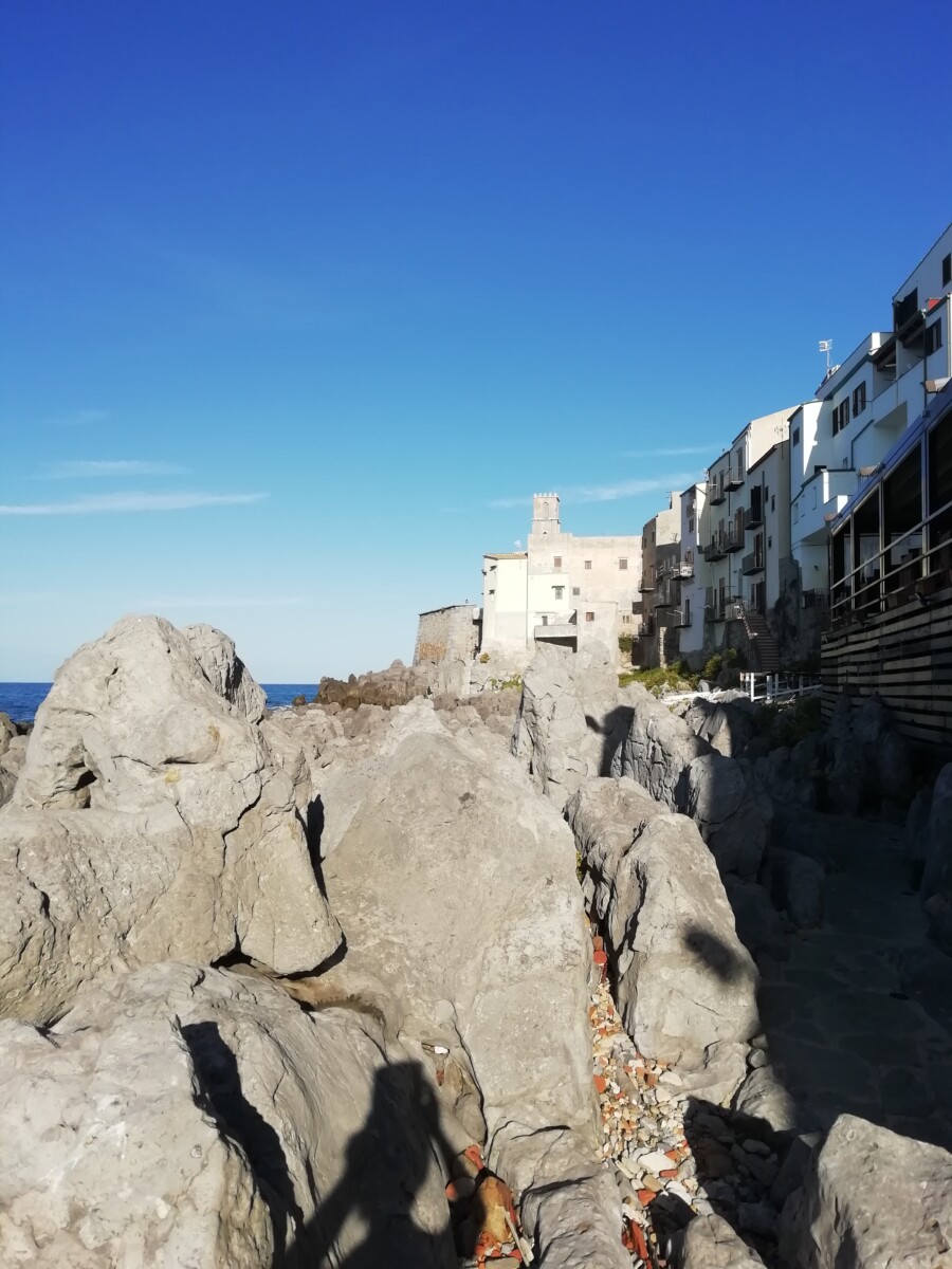Tegen 11.30 uur vertrokken we naar Cefalù, ca. 70 km ten oosten van Palermo, langs een mooie, bergrijke kust. Om 12.25 uur arriveerden we al in Cefalù. Iets te vroeg, maar onze host was bijna klaar met de schoonmaak van de woning. Wij kochten ondertussen bij de meest nabije supermarkt boodschappen voor twee dagen en wandelden terug naar de Via Gramsci voor een lekkere lunch op het kleine, zonnige balkon met uitzicht op zee en de ‘Rocco’ (een hoofdvormige rotsige berg) waar het stadje tegen aan ligt. Héél mooi!