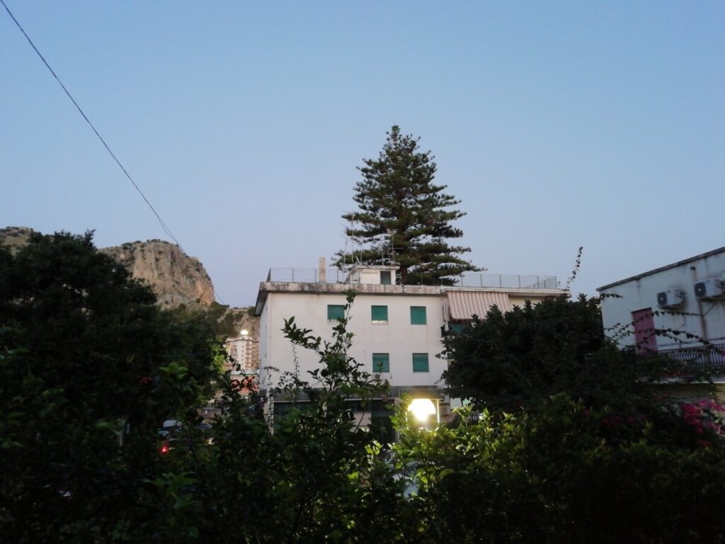 In de kathedraal oefende een symfonieorkest. Bijzonder hieraan: het bestond uit topamateurs uit de hele wereld die tien dagen naar Cefalù kwamen (in 2018 voor het eerst) en dan aan het eind van hun verblijf een voorstelling in de kathedraal gaven. Mooi om even bij de generale repetitie naar werken van Mendelssohn en twee Siciliaanse componisten te mogen luisteren. Aan het eind van deze namiddag, tegen de avondschemering, hebben we nog eens de skyline van oud-Cefalù in ons opgenomen. Het licht was prachtig!