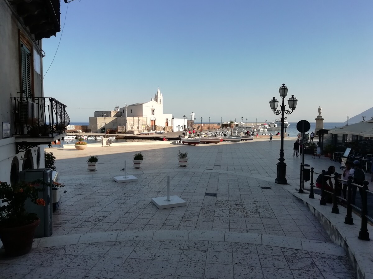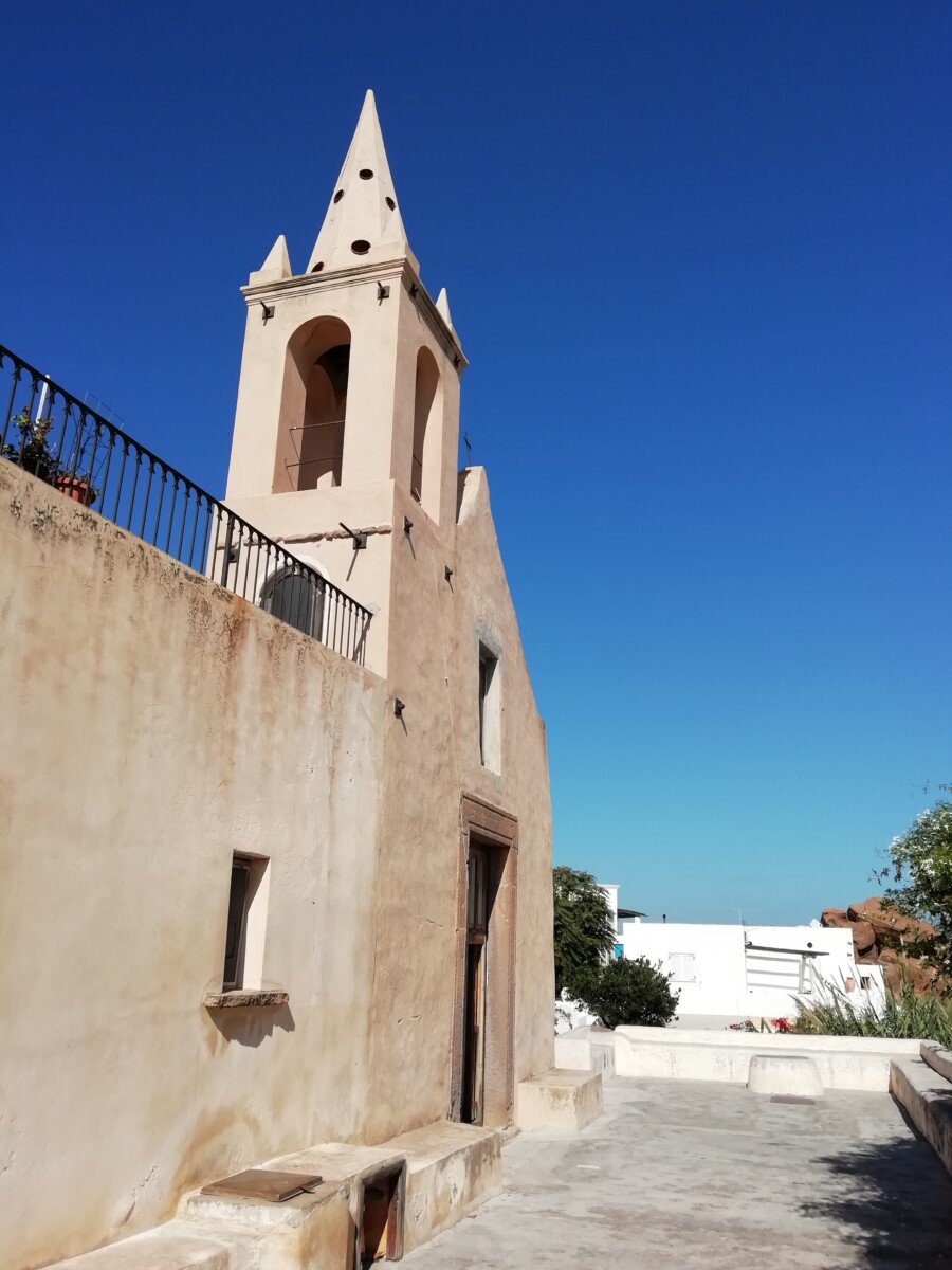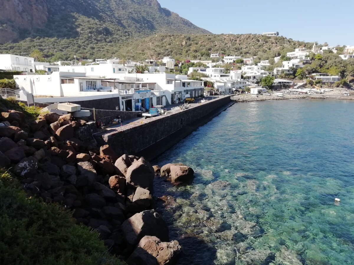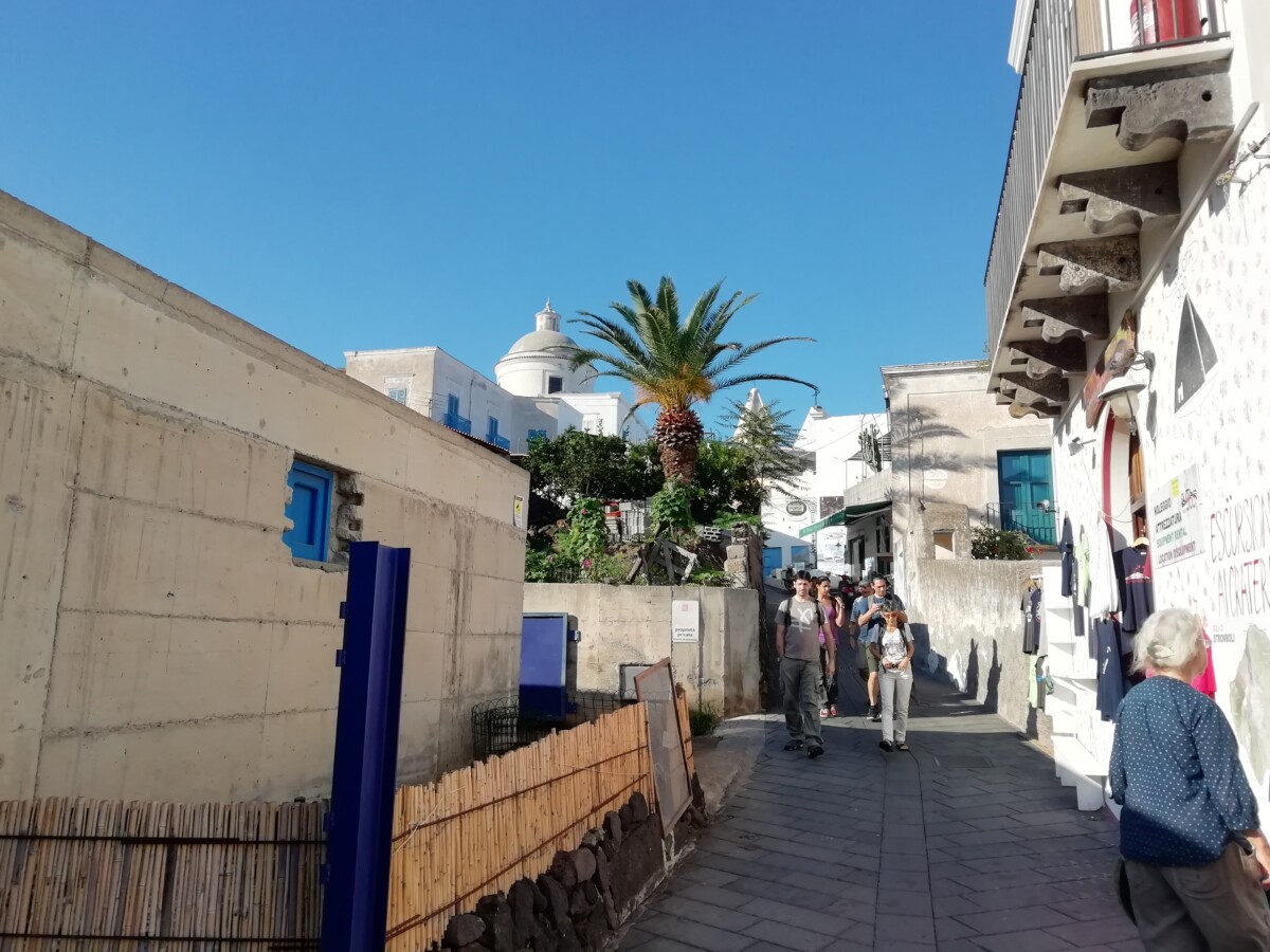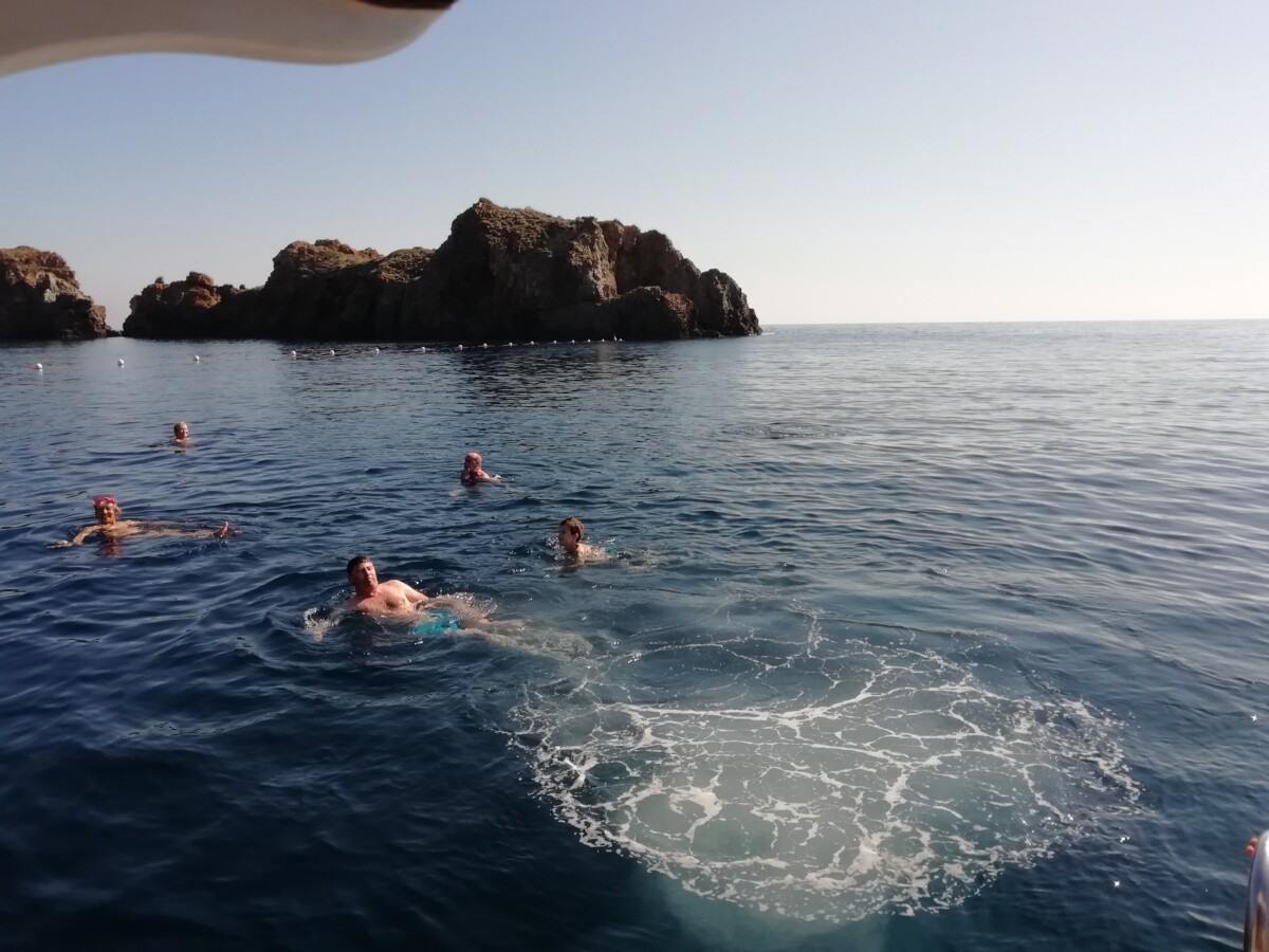 Ruim de helft van de mensen deed dat ook een kwartiertje lang, met of zonder bril of snorkel, mooie natte boel aan bord. De sfeer was en bleef formeel en afstandelijk onderling (Fransen, 2 Israëli’s, enkele Oost-Europeanen, geen Duitsers of Nederlanders). Vandaar ging het dan weer rap verder naar het haventje van Panarea. Niet alleen de naam van dit eiland (met één dorpje) klinkt Grieks. We mochten naar hartenlust 5/4 rondzwerven. Siëstatijd, stil, vredig, mooie huizen en stegen, gewoon een fijne plek, wel wat afstandelijk. Veel b&b’s en appartementen en weinig ‘sociale plekken’, wel twee mooie kerkjes. Een mooie locatie om ooit terug te komen.