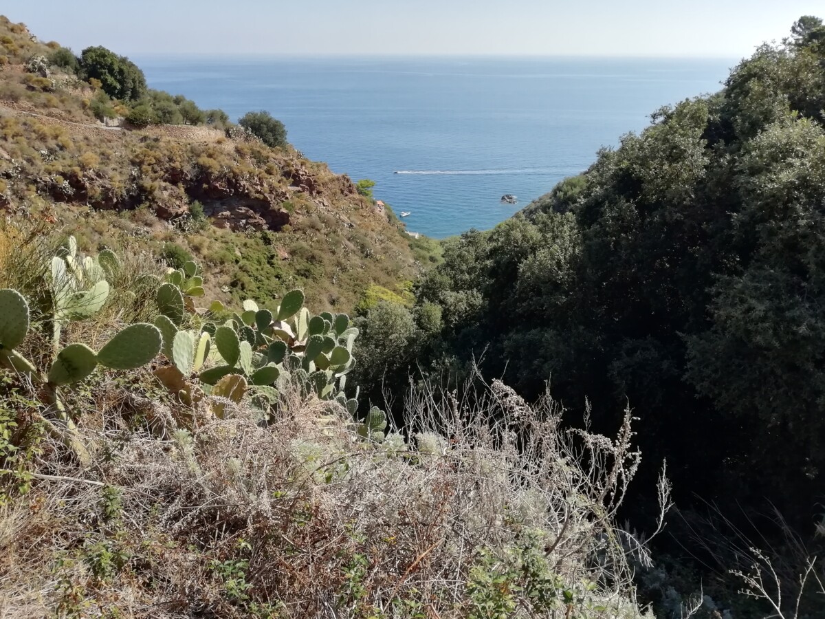 22 oktober: Vandaag hadden we ons een wandeling naar het zuidpunt van Lipari met een grandioos zicht op het buureiland Vulcano voorgenomen. Gesterkt met een ontbijt op het dakterras en een koffie op de hoofdstraat liepen we via een prettige weg het stadje uit.