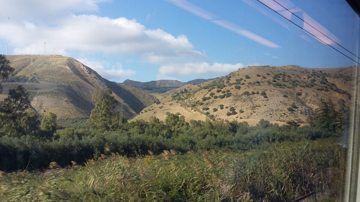 Zo weinig de kust tussen Catania en Syracuse ons bekoorde zo veel meer deed het binnenland van Sicilië, waar we dankzij de grillen van Trenitalia (enorme omwegen van kust tot kust) van mochten genieten, ons veel plezier. Heerlijk heuvel- en bergland, veel gecultiveerder (land- en tuinbouw, koeien en schapen) dan we dachten, afgewisseld met onmogelijk te cultiveren rotspartijen en ravijnen. Weinig (natuurlijk) bos, ergens bij Roccapalumba zagen we gelukkig ook wel herbebossing.