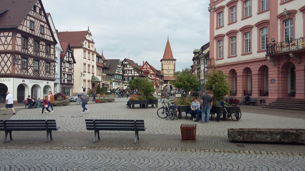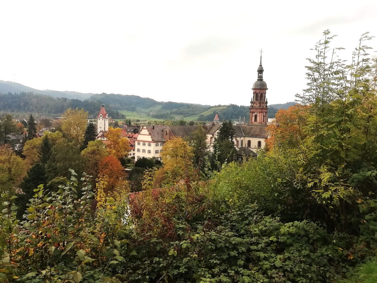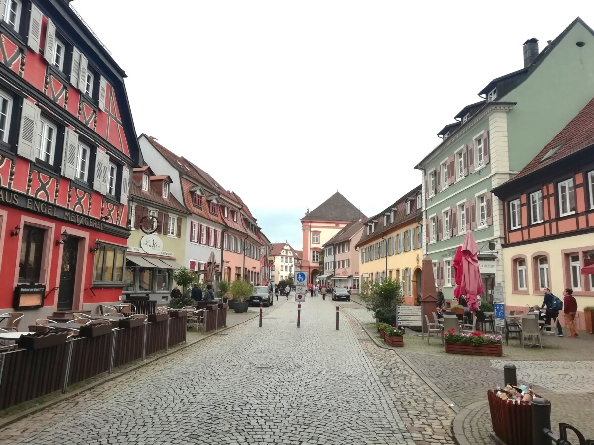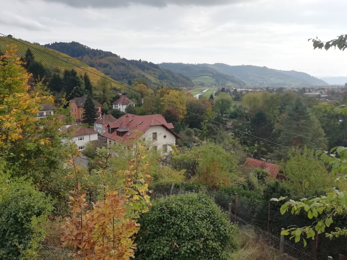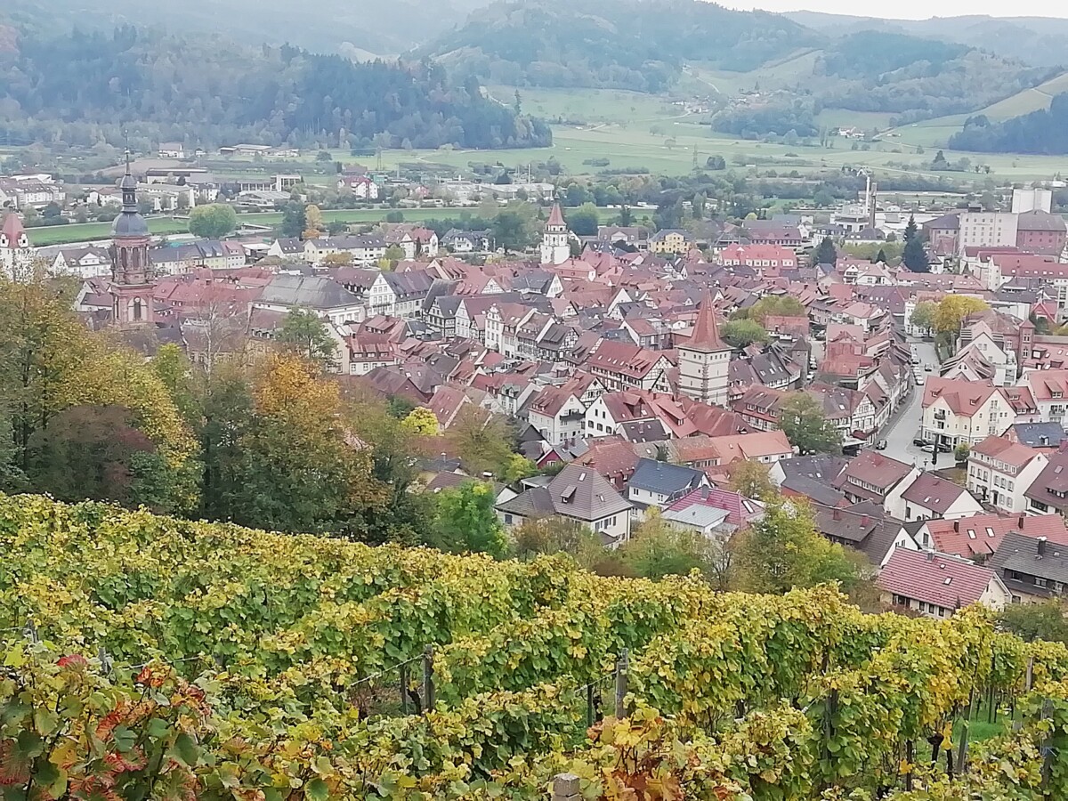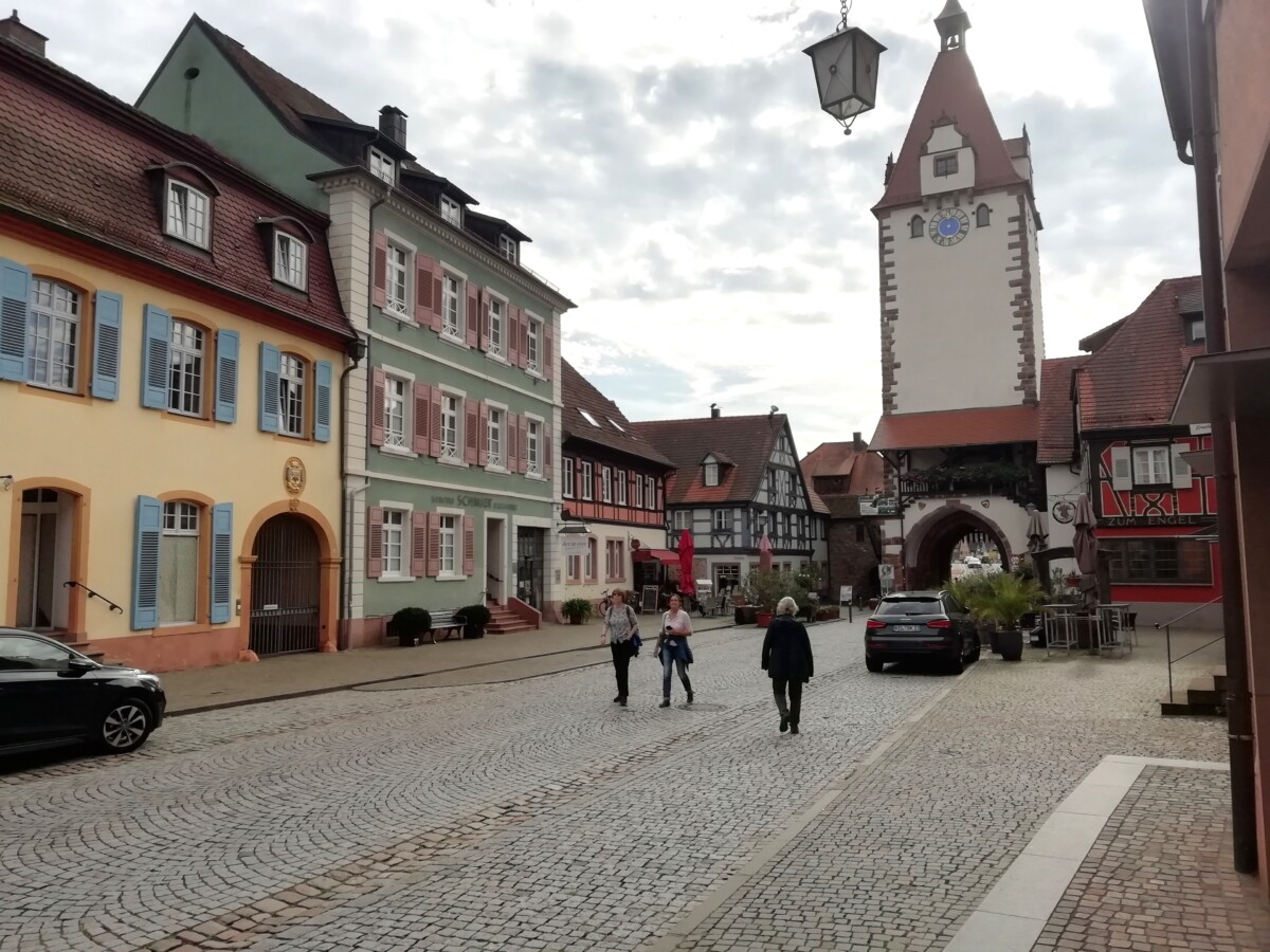 Per trein naar het nabije kleine, romantische Gengenbach, een fraai wijnbouwstadje in het Zwarte Woud, ingebed in heerlijke, kleurrijke wijnbergen! Een openbaring, nooit van gehoord, toch even mooi als de mooiste vakwerkdorpen in de ruime omgeving van ZW Duitsland en de Franse Elzas.