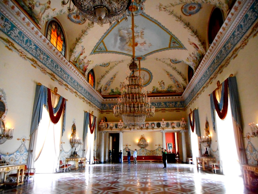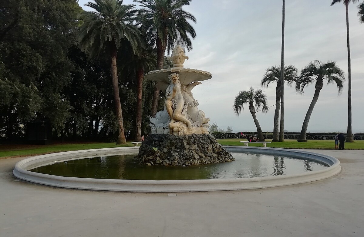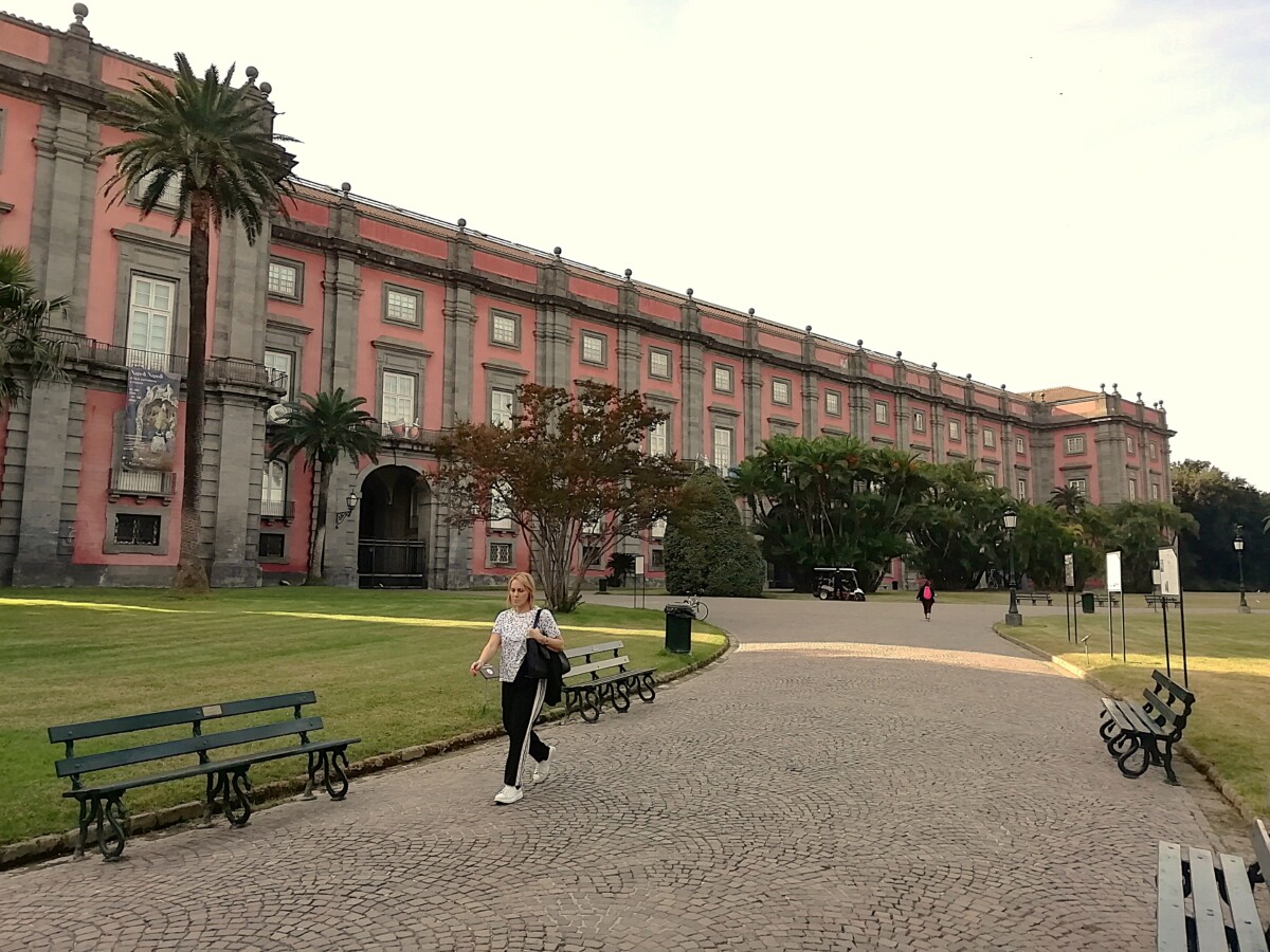 Wel lekker gegeten, authentiek, bijna opgenomen in de familie. Terug naar ons verhaal: toen we ’s middags terugkwamen voor onze lunch en siësta, besloten we eigenlijk de stad te ontvluchten richting een leuke kleine badplaats of een vissersdorp vlakbij. Dat bleek al gauw 40 km verderop met onvoldoende treinaansluitingen. Dus: toch maar naar dat grote museum op de heuvels boven Napels, Copadimonte. De bushalte gauw gevonden, wel een halte te vroeg uitgestapt. Via 100 traptreden en – gelukkig heel kort maar – langs een levensgevaarlijke stadssnelweg toch het museum in het park bereikt. Een weelde van rust en groen: een Engels parklandschap met mediterrane invulling (prachtige hoge dadelpalmen b.v.) en een enorm groot en lang kasteel.