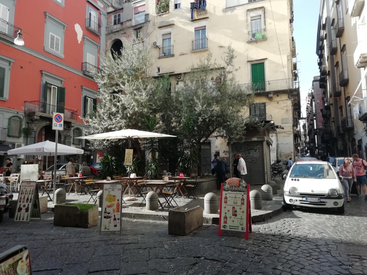 24 oktober: begon met een vers, lekker ontbijt in een nabije koffiebar. Het duurde wel even voor we die plek gevonden hadden; dat gold terug ook voor onze kamer (wat een wirwar aan trappenhuizen) en dat zouden we de hele dag blijven vaststellen: Napoli is een dwaze stad, met weinig regels, ordening, enig gevoel voor efficiëntie (sorry Napolitani voor wie dit natuurlijk ook niet allemaal geldt). We zouden maar een complete dag in Napels verblijven, dus wij besloten de stad deels maar op ons af te laten komen, ‘verantwoord’ te dwalen, maar ook het oude, veilige centrum met hoofdwinkelstraten, pleinen, musea, kathedraal etc. niet helemaal buiten beschouwing te laten.