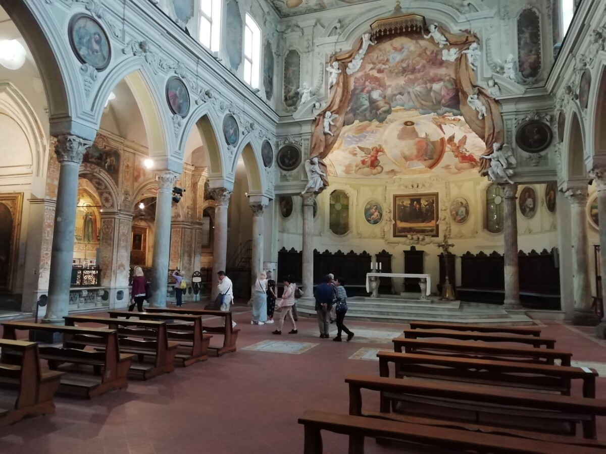 Anderhalf uur later gingen we weer op avontuur: deze keer wilden we onze eigen wijk tot aan zee verkennen. Even de oude, van buiten fraaie Santa Lucia al Sepolcro binnen – toe aan de zoveelste renovatie – maar vooral onder de indruk van de kloostergang vóór de kerk met een tijdloos brevierende pater.