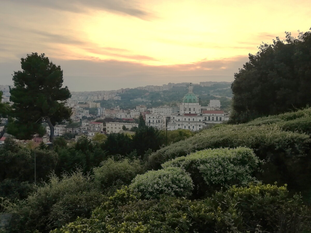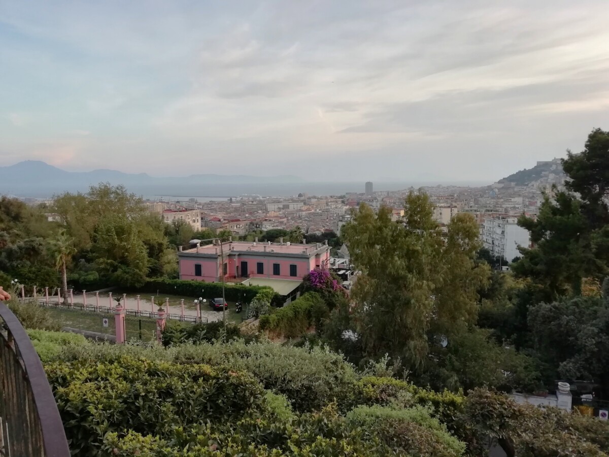 In heerlijke ruimtes (hier woonde ooit de Europese ‘hoogadel’) met uitzichten op de bergen en de zee. Volkomen gescheiden van de armoede, het gekrioel en de waanzin aan de voet van hun rijk. Het confronteerde ons weer eens zo duidelijk met de kerkelijke en wereldlijke macht die zich zo schaamteloos kon verrijken ten koste van hun onderdanen. Emotioneel heen en weer geschud gingen we daarna toch genieten van een belvedère met heerlijke uitzichten over Napels. Als de afstand voldoende is lijkt Napels een heerlijke stad!