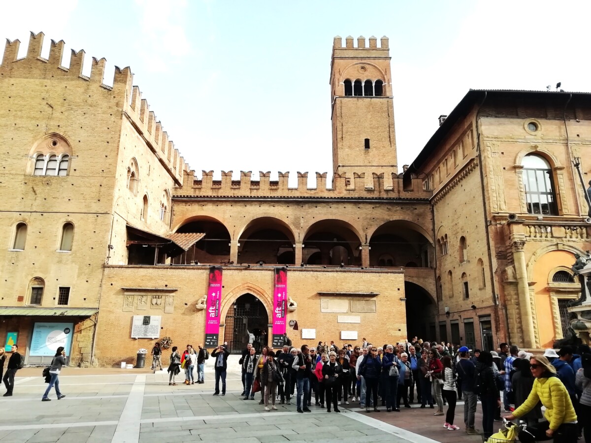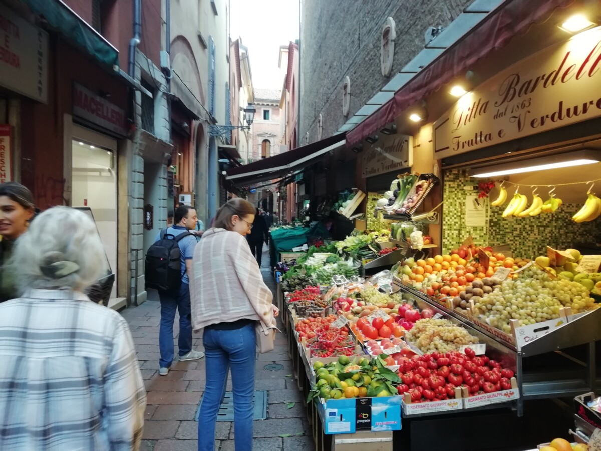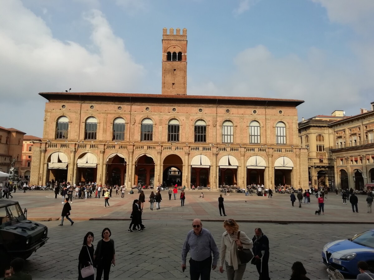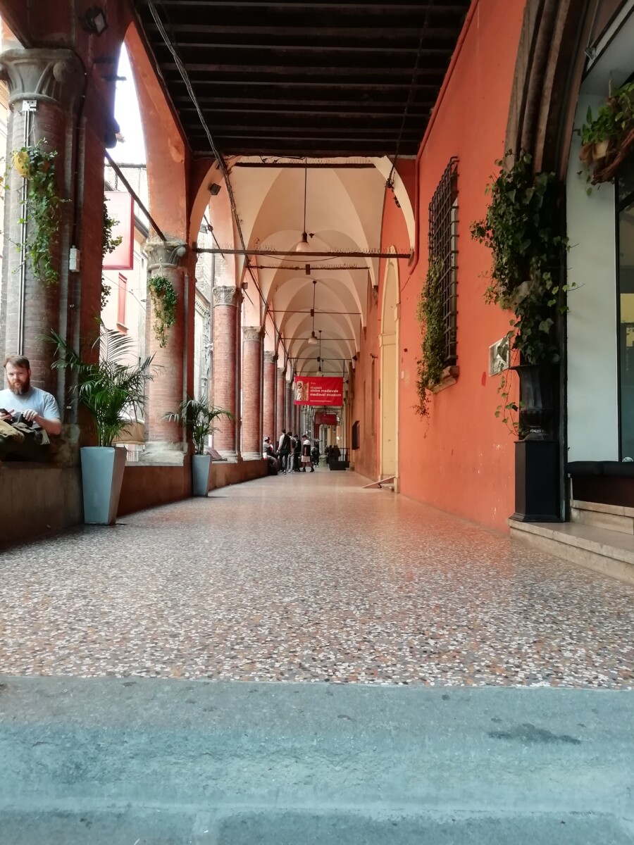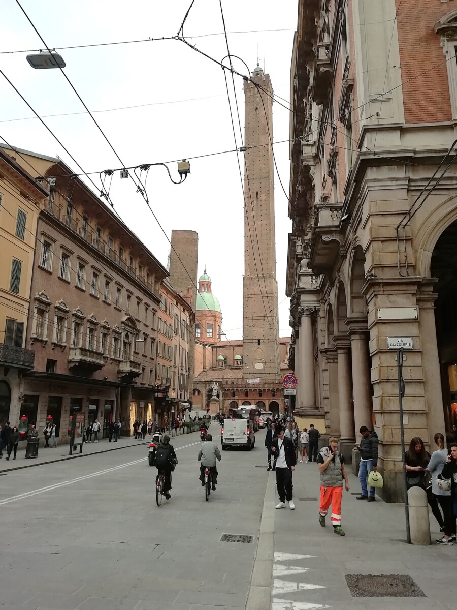 25 oktober: Het einde van het Italië-gedeelte van onze reis kwam nu onherroepelijk in zicht. Op tijd naar onze ontbijtbar voor koffie en zoetigheid en vervolgens op zoek naar de trein naar Bologna onze laatste overnachting in Italië. Volgde een mooie treinreis door Toscane, langs Rome, vele herinneringen, weemoed – toch maar gewoon doorreizen. Op de gewenste tijd in de befaamde universiteitsstad nét niet meer in Midden Italië, toch al eerder Noord-Italiaans. Het viel ons vooral direct op in het verkeer – veel relaxter, veel meer fietsers en wandelaars. Onze Airbnb-host Grace kon ons tegen 13 uur niet even binnenlaten om de bagage neer te zetten. Flauwe smoes. Dus moesten we de bagage opgeven, 18 euro voor 3 stukken. Tot tegen 16.30 uur genoten we in volle teugen van de stad. Kilometers lang kun je hier droog en regelmatig met prachtig uitzicht of langs etalages onder arcaden lopen – ongekend!
