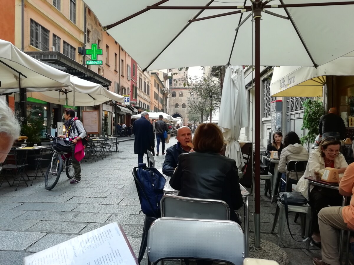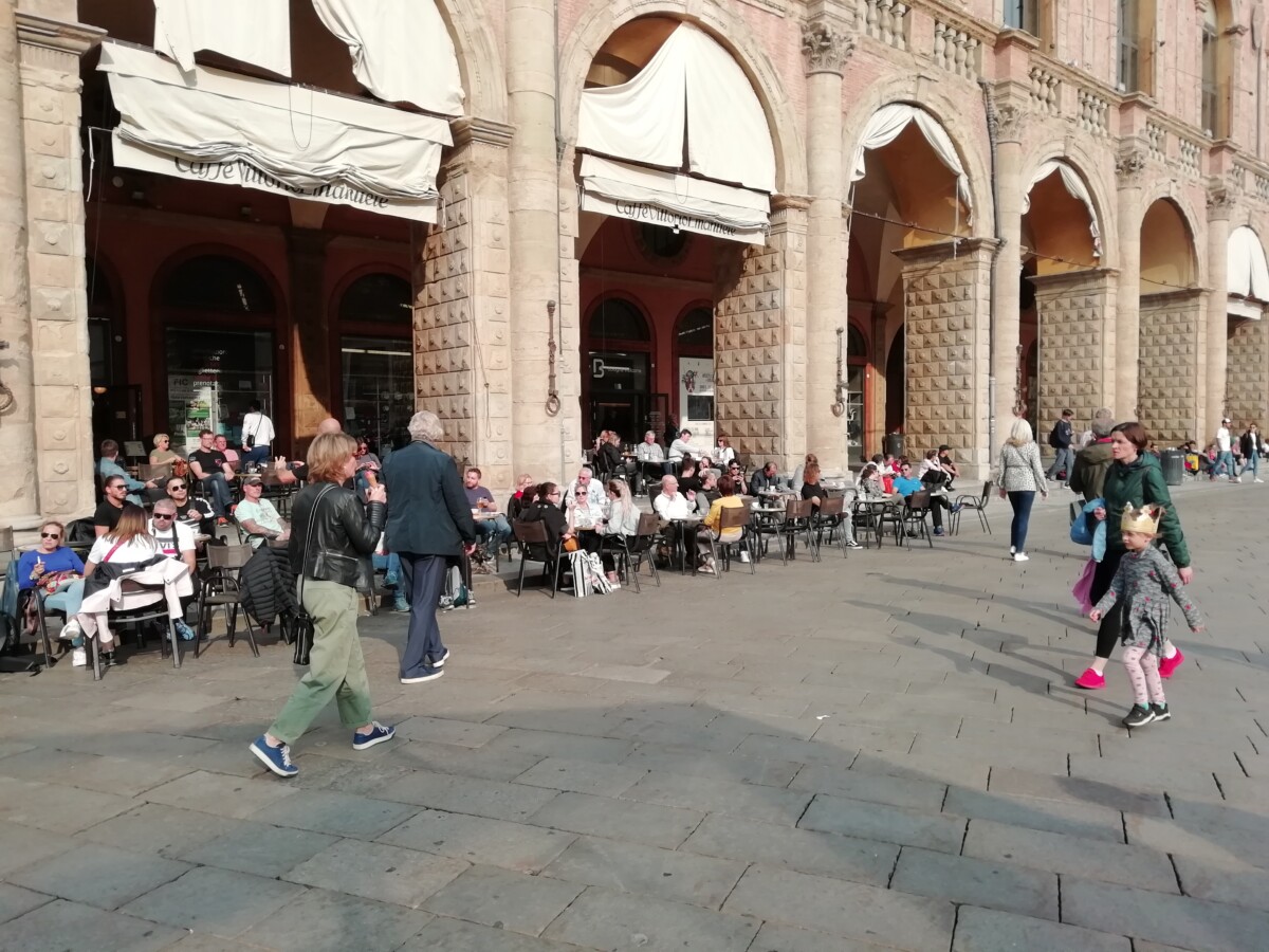 Ook nog lang met koffie op een terras gezeten en naar het voorbij slenterende of haastende volk gekeken. Bologna wordt duidelijk minder ‘overspoeld’ door miljoenen toeristen dan andere befaamde Italiaanse steden.