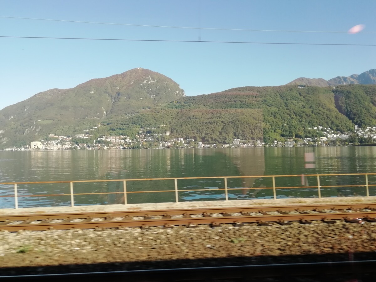 28 september: Met de trein van 9.23 uur naar Basel, aardig uitgezwaaid door Nathalie en haar vriend. Prima eerste slaapplek! In Basel stapten we na een langere pauze in een drukke trein met reserveringsplicht richting Lugano. Via prettige groene middengebergte sferen naar het ‘échte’ Zwitserland met hoge, rotsige bergen en vele meren met prachtige vergezichten! Het Zuger Meer, Vierwoudstrekenmeer, Meer van Lugano en Meer van Como maar ook 57 km door de St. Gotthard-Basistunnel (langer kan je nergens ter wereld door een treintunnel reizen). Een unieke treintocht; we werden soms zelfs verleid om uit de trein te ‘kieken’…