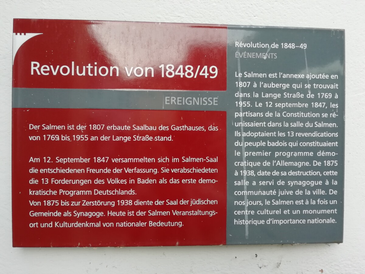 Eerst was alles nog heel stil, leuk om in alle rust de relatief kleine, maar aangename zuid Duitse binnenstad te bekijken. Zo kwamen we ook De Salmen, een historisch gebouw uit de Duitse politieke geschiedenis tegen. Jammer genoeg was het gebouw op zondag gesloten. Nog een koffie in het eerste café dat er openging, nog een rondje sightseeing – al twee rondleidingen bezig op het grote plein – en dan terug naar het station.