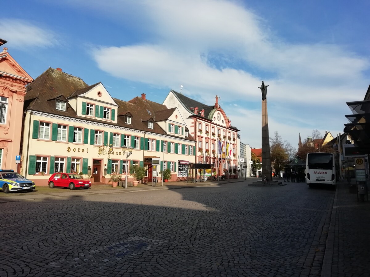27 oktober: Al vroeg, tegen 8.15 uur (eigenlijk 9.15 uur), al bij de nabij bakkerij annex café Armbruster: croissants, cake, koffie als geïmproviseerd, mediterraan ontbijt. Dan, voldoende gesterkt, kennis gemaakt met het zondagse Offenburg.