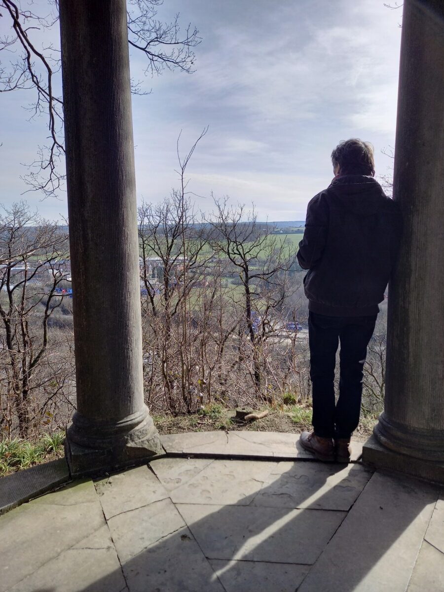 4 maart: Na ontbijt en koffie met de bus naar het 6 km verderop gelegen Vaals. Aan de ouderwetse hoofdstraat – dé doorgaande, drukke weg dieper de provincie Limburg in – nog een koffie gedronken, voordat we aan een 6 km lange Drielanden-wandeltocht begonnen. Een wandeling op en nabij de grenzen van België, Duitsland en Nederland. Grotendeels bos, weiden, allerlei ‘recreatievermaak’, zoals 2 uitzichttorens (een in België de andere in NL), een labyrinth (België), grote parkeerruimtes (overal, vaak is het hier dus héél druk).