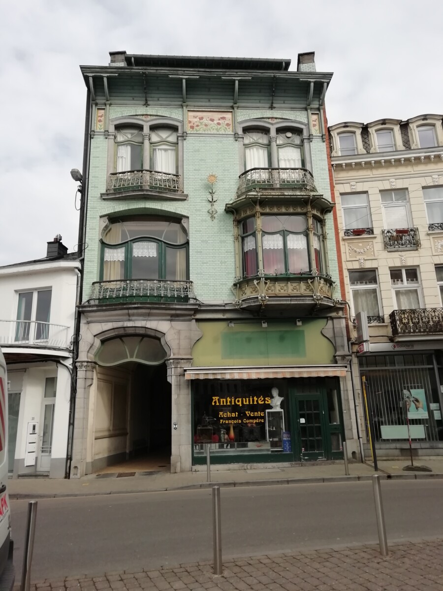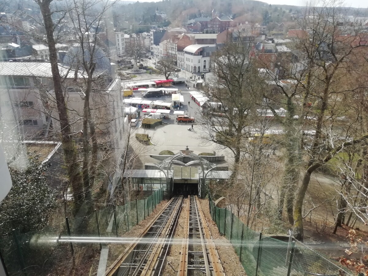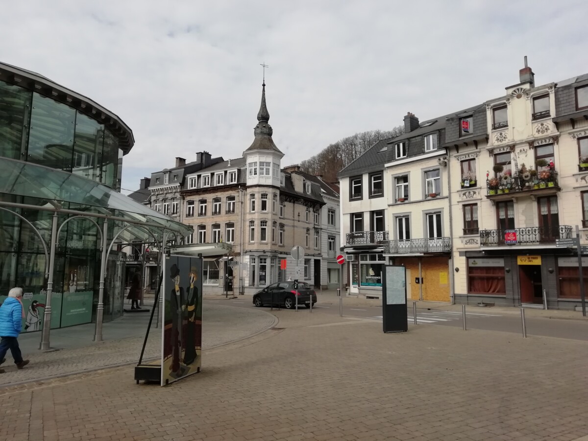 Weer beneden lukte het ons wel een mooie plek voor koffie en gebak te vinden: een oud gebouw uit de 18e eeuw, het voormalige hotel d’Irlande. Terug naar het station, trein terug naar Aken; halverwege dan het flitsidee om even een uurtje in Verviers rond te kijken – nooit eerder geweest. Kon toch niet zo lelijk zijn als de eerste indruk uit de trein… nee, het kon nog veel erger! We konden ons beiden geen lelijkere, meer aftandse, doodsere stad herinneren. Veel leegstand, afbraak, tientallen lege winkels in treurige straten. In een oude-mannen-kroeg bij het wel formidabele station een fris biertje gedronken. Toch erg treurig allemaal, al zal ook Verviers -met de nodige veerkracht- ooit weer in oude glorie herrijzen. De plek is niet voor niets al sinds de Romeinen bijzonder bedrijvig. Om 18.15 uur arriveerden wij weer in Aken, een levendige, mooie stad die ‘straalt’ in vergelijking met Verviers! Ach, het is ook wel eens behelpen op Willy’s verjaardag. Het kan niet altijd Barcelona, Rome, Lissabon of Brugge zijn! Volgend jaar – 70ste verjaardag – moeten we wel weer iets heel bijzonders verzinnen.