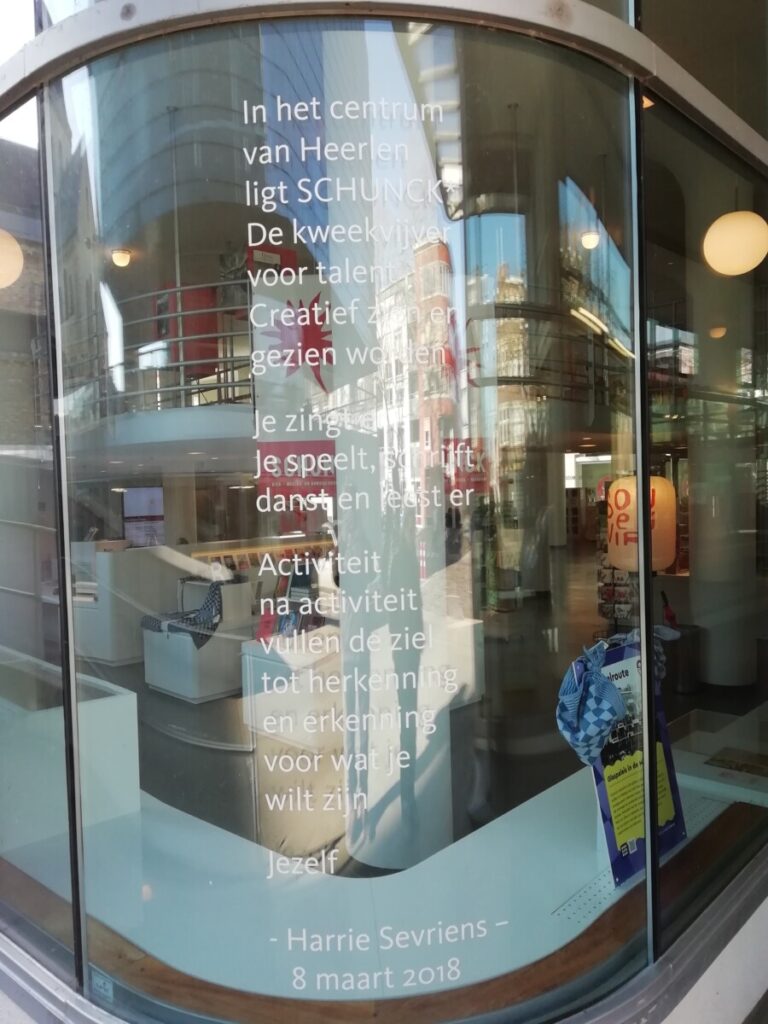 2 maart: Na ontbijt en koffie ’thuis’, tegen 9.45 uur op stap richting Heerlen om de volgende stad met (ooit) een slechte reputatie beter te leren kennen. De eerste indrukken waren overdonderend: wat een mooie architectuur op en rond het centraal station! Het leek wel een burchtcomplex op een kleine heuvel, heel Italiaans. Het Maankwartier: Een iconisch, grootschalig project dat het treinstation, kantoren, winkels en woningen integreert en de wijk bij het centrum heeft betrokken.
