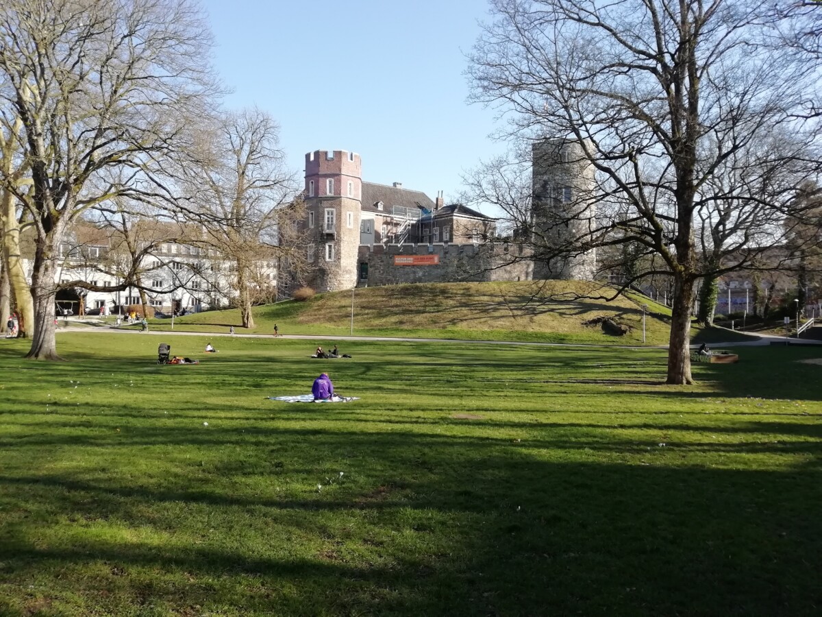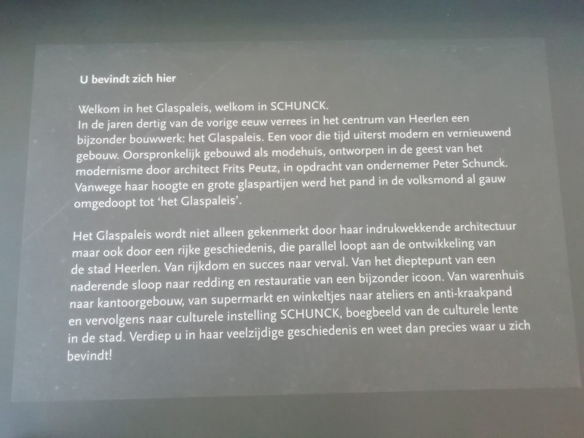 Je wandelt er als vanzelf naar het nabije centrum met het Glaspaleis van Schunck naast de oude St. Pancratiuskerk: een meesterlijk glazen paleis, 5 verdiepingen hoog, naast een 13e eeuwse kerk. Wonderlijk! Het Glaspaleis van Schunck, een voormalig modehuis werd omgetoverd tot een multicultureel centrum, laagdrempelig en zeer de moeite van een bezoek waard.