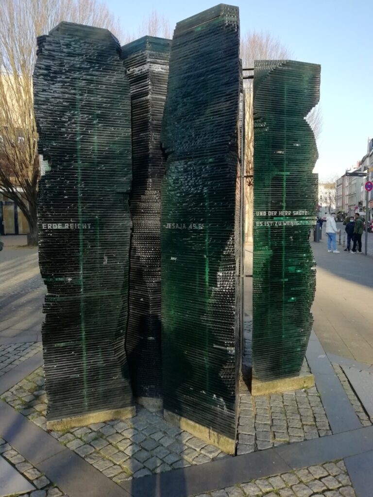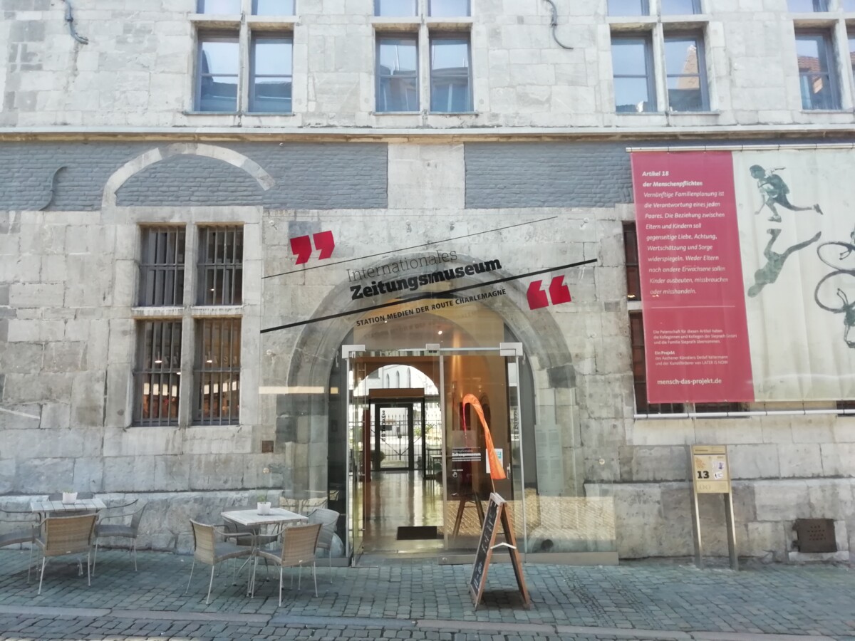 Met de bus weer terug naar het centrum van Aken, waar we de Jakobskerk en buurt bekeken, en het Tijdschriften en krantenmuseum Aken bezochten, een leuke plek voor thee, koffie en gebakjes, maar ook heel leerrijk als interactief museum. Dan nog rustig door de binnenstad geslenterd, druk overal – ook vandaag weer veel eerste terrassen in de zon. Op zoek naar het Joodse monument/de plek van de vm. synagoge, op de Willy Brandtplatz, opeens het mooiste moment van de dag: Tegen 16.30 uur vlogen er honderden kraanvogels in V-formatie en lange slierten over het centrum van de stad. Opwindend om naar te kijken!