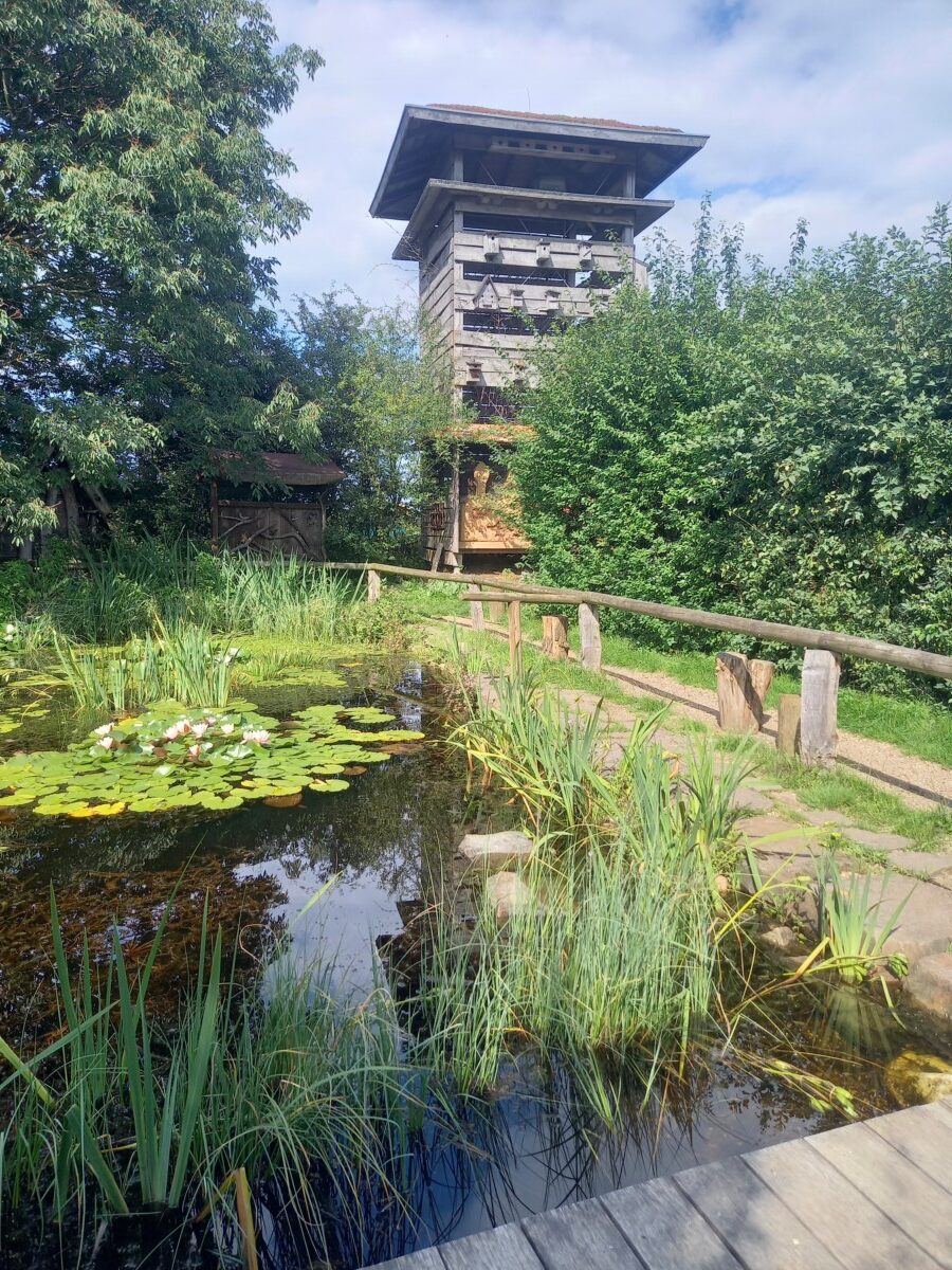 Dit fraaie bos- en heidelandschap sloot naadloos aan bij een ons -vanuit het westen gezien- nog onbekend gebied, het Naturpark Schwalm-Nettetal. Oude bossen, veel meren ontstaan door turfstekerij, afgewisseld door relatief ouderwets, kleinschalig boerenland ‘uit onze jeugd’ met veel oude boerderijen, afwisselend landschap, veel fietsers en mooie, rustige (wel geasfalteerde) veldwegen. Tussendoor hebben we ook nog twee natuurcentra bezocht. Ontroerend oubollig, maar óók deels hedendaags, iets wat je in Nederland zelden gecombineerd ziet.