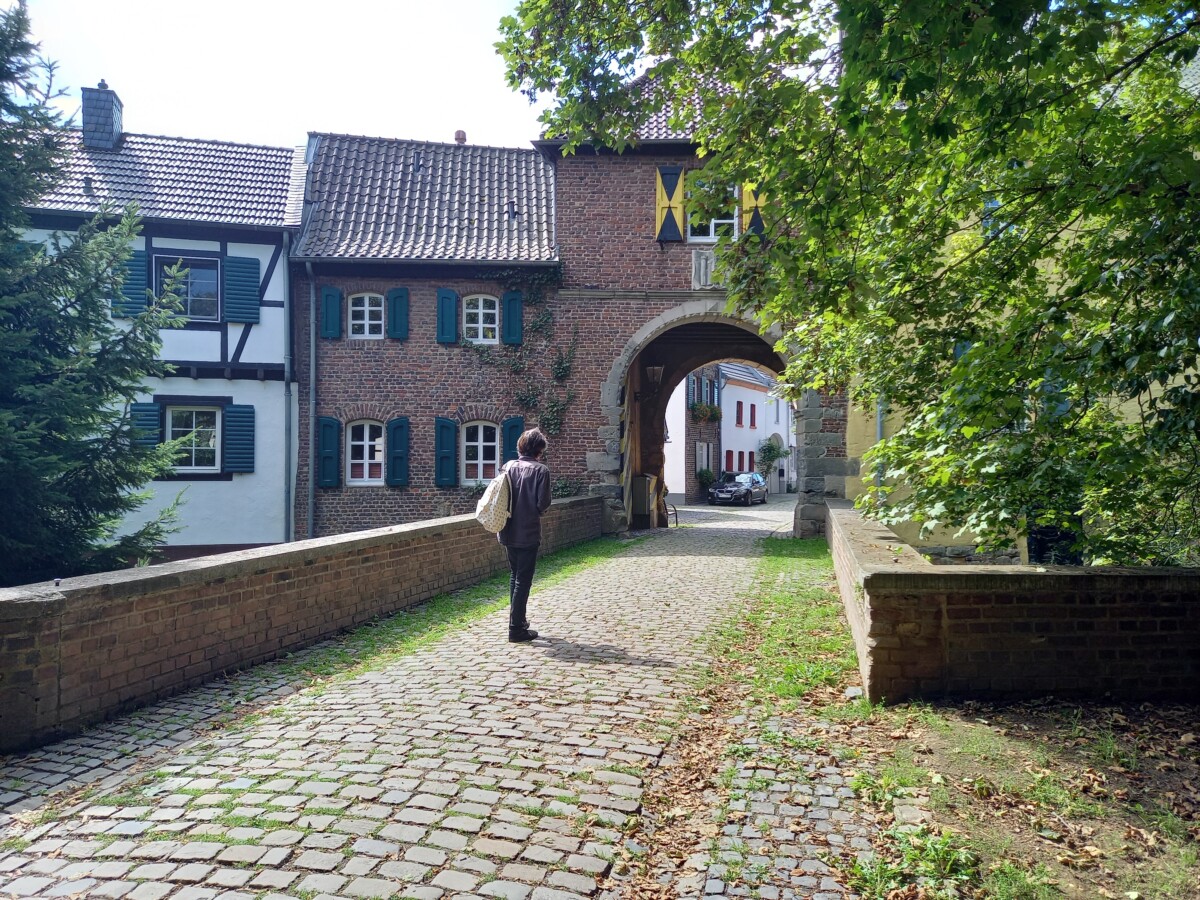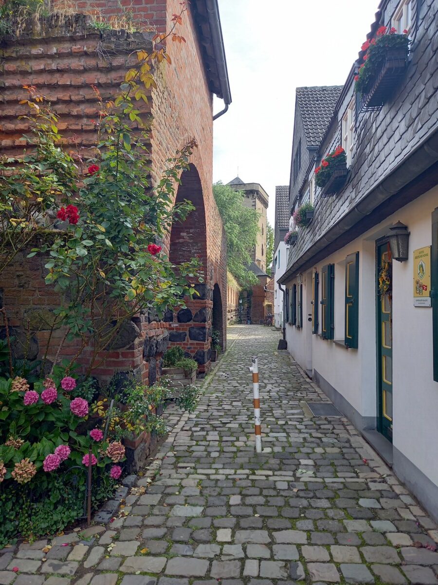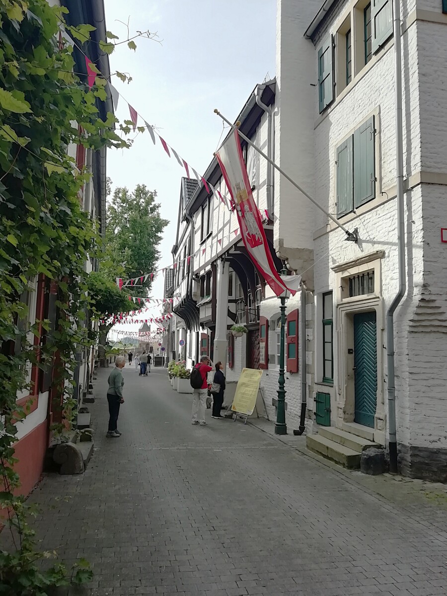 We naderden een ons onbekend (ook Willy) mini-stadje tussen de poorten en de muren, Alt-Kaster! Heel mooi en sfeervol, een klein, verborgen juweeltje. In 1954 gered voor de ondergang i.v.m. de nabije bruinkoolwinning. Heerlijk dat mensen toen die vernieling konden voorkomen! Er werd wel, ook voor omringende dorpjes en gehuchten een nieuw Kaster enkele kilometers verderop gebouwd. Wij vermaakten ons op het terras in een prachtige cour van een fraai hotel-restaurant en bekeken aansluitend in alle rust het kleine stadje.