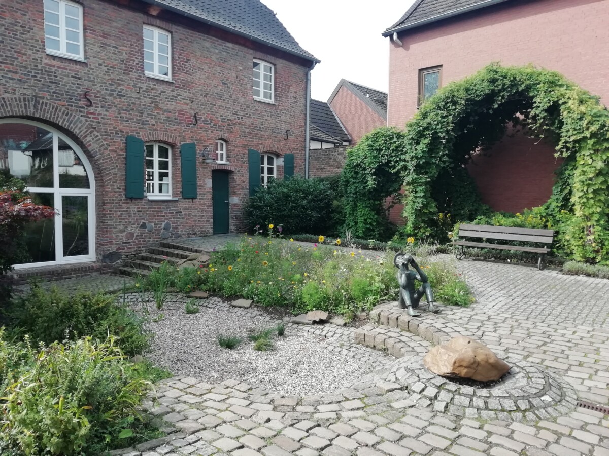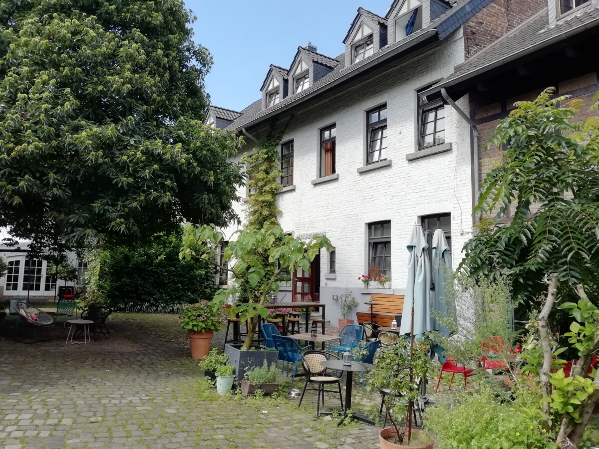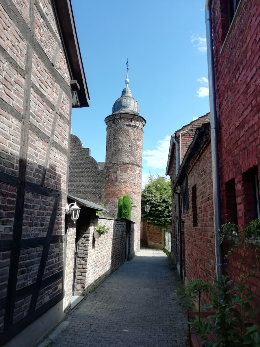 We naderden een ons onbekend (ook Willy) mini-stadje tussen de poorten en de muren, Alt-Kaster! Heel mooi en sfeervol, een klein, verborgen juweeltje. In 1954 gered voor de ondergang i.v.m. de nabije bruinkoolwinning. Heerlijk dat mensen toen die vernieling konden voorkomen! Er werd wel, ook voor omringende dorpjes en gehuchten een nieuw Kaster enkele kilometers verderop gebouwd. Wij vermaakten ons op het terras in een prachtige cour van een fraai hotel-restaurant en bekeken aansluitend in alle rust het kleine stadje.