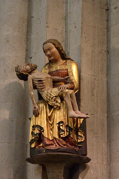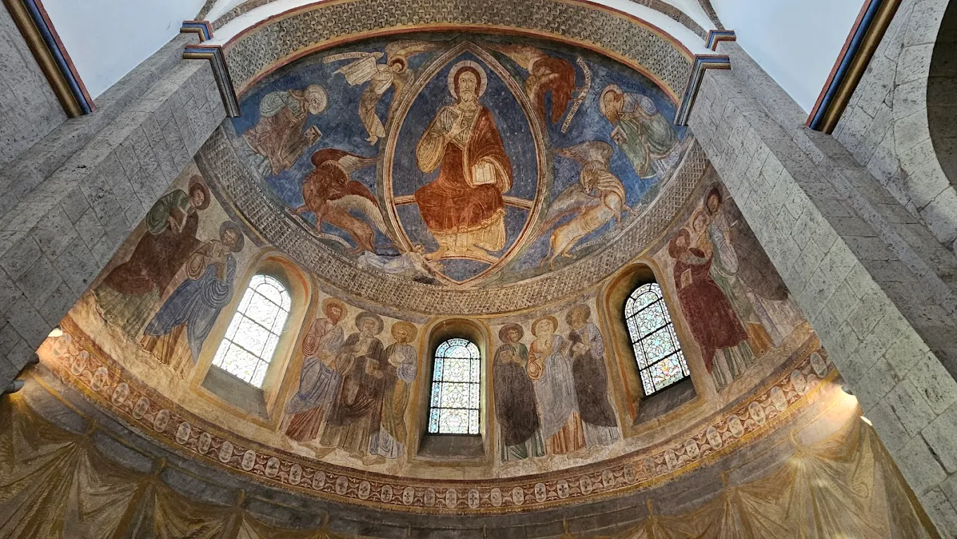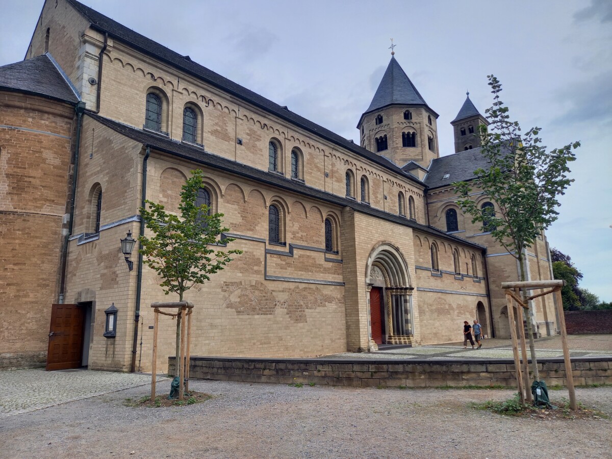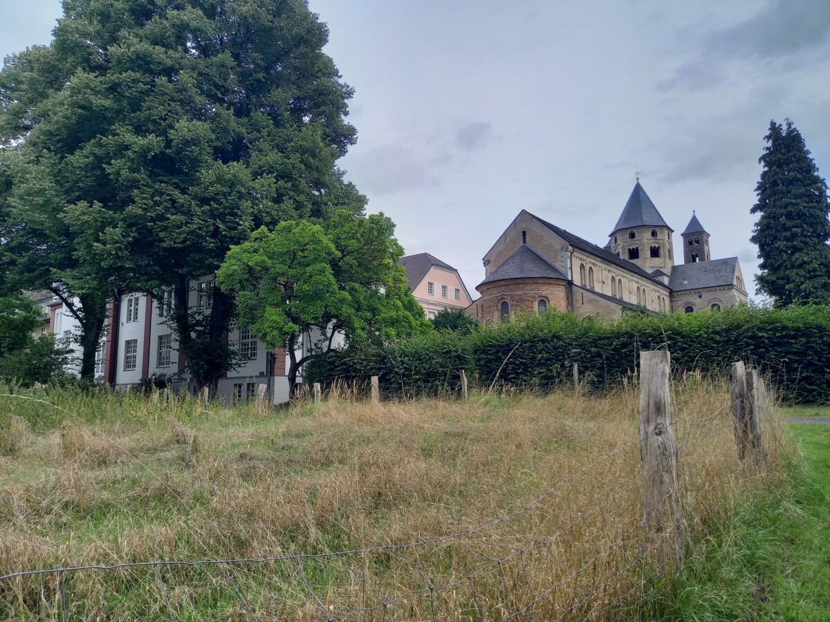 Tot we plotseling, nog in het bos, voor de achteringang van het befaamde klooster Knechtsteden stonden. Druk was het bij de kloosterwinkel, veel handwerk, vintagekleren e.d. Maar ook contemplatief, even zitten en ontspannen in de oeroude Romaanse basilica.