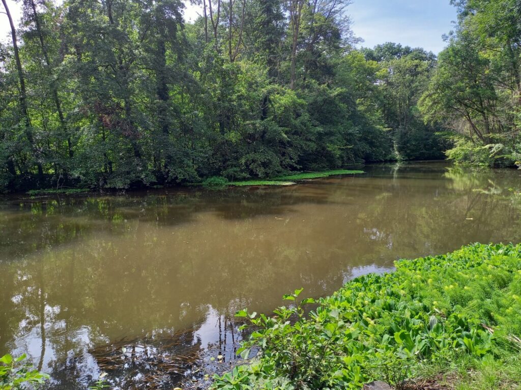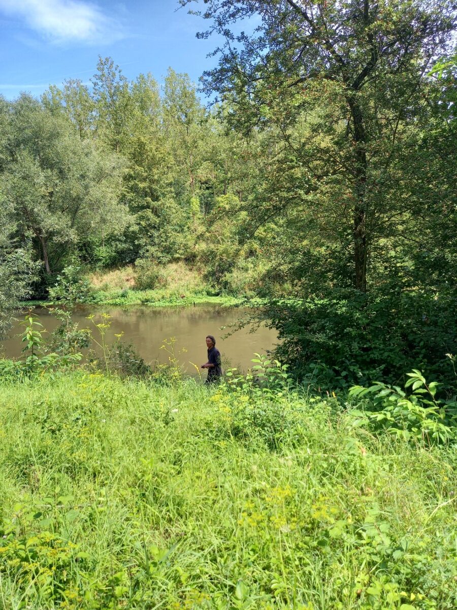 Vandaar bleven we de Erft volgen, soms zoeken. Willy’s streekgenoten mogen voor deze prachtige kleine rivier wel nog wat meer moeite doen, betere infrastructuur en basisinformatie ontwikkelen. In Grevenbroich, Wevelinghoven tot bij Holzheim, Insel Hombroich, ontmoetten we de Erft regelmatig met zeer veel plezier. Het prachtige Museumeiland Insel Hombroich lieten we links liggen. Te weinig tijd en energie voor deze dag en ook al een handvol keren intensief bezocht! Zo bereikten we vrij vroeg ons doel van de dag, een airbnb-adres in Neuss-Reuschenberg. Waardeloos elektropitje als kookgelegenheid, voor de rest redelijk. Dus wij ‘mochten’ ons op de laatste avond een relatief lekkere pizza met salade permitteren.