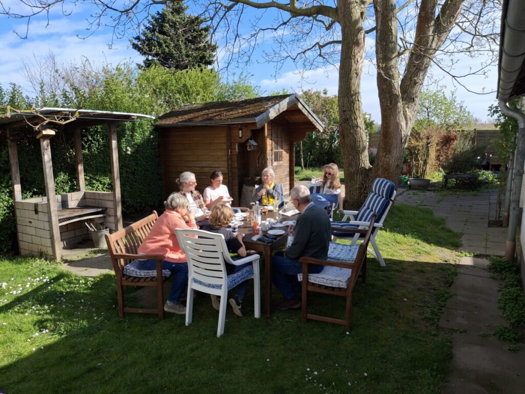 Zondag 13 augustus: Zaterdag de 12e augustus werd een familiedag. Tot in de namiddag binnen i.v.m. regen. Daarna was een familiaire Kaffee und Kuchen met aansluitende BBQ in de tuin aangekondigd. Tussendoor nog buiten spelen met de jongste generatie, resp. bijpratend en ontspannen kletsend met de oudere generaties. Het werd nog een lange, gezellige dag.